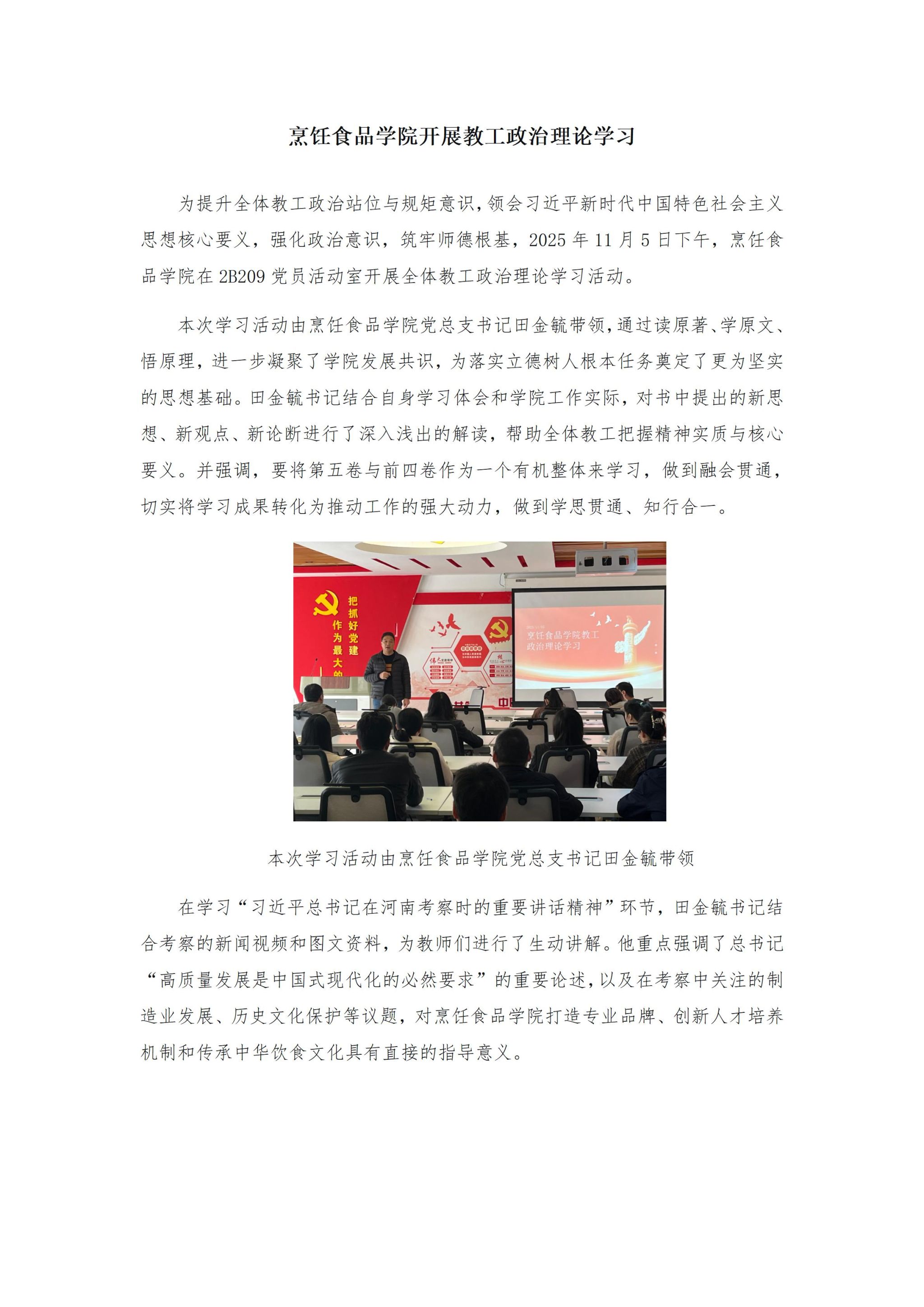 烹饪食品学院开展教工政治理论学习