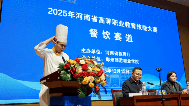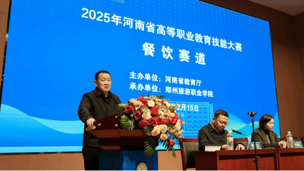 2025年12月15日下午,由河南省教育厅主办,pp电子游戏平台网站承办的2025年河南省高等职业教育技能大赛(餐饮赛道)在2B教学楼礼堂正式开幕。
