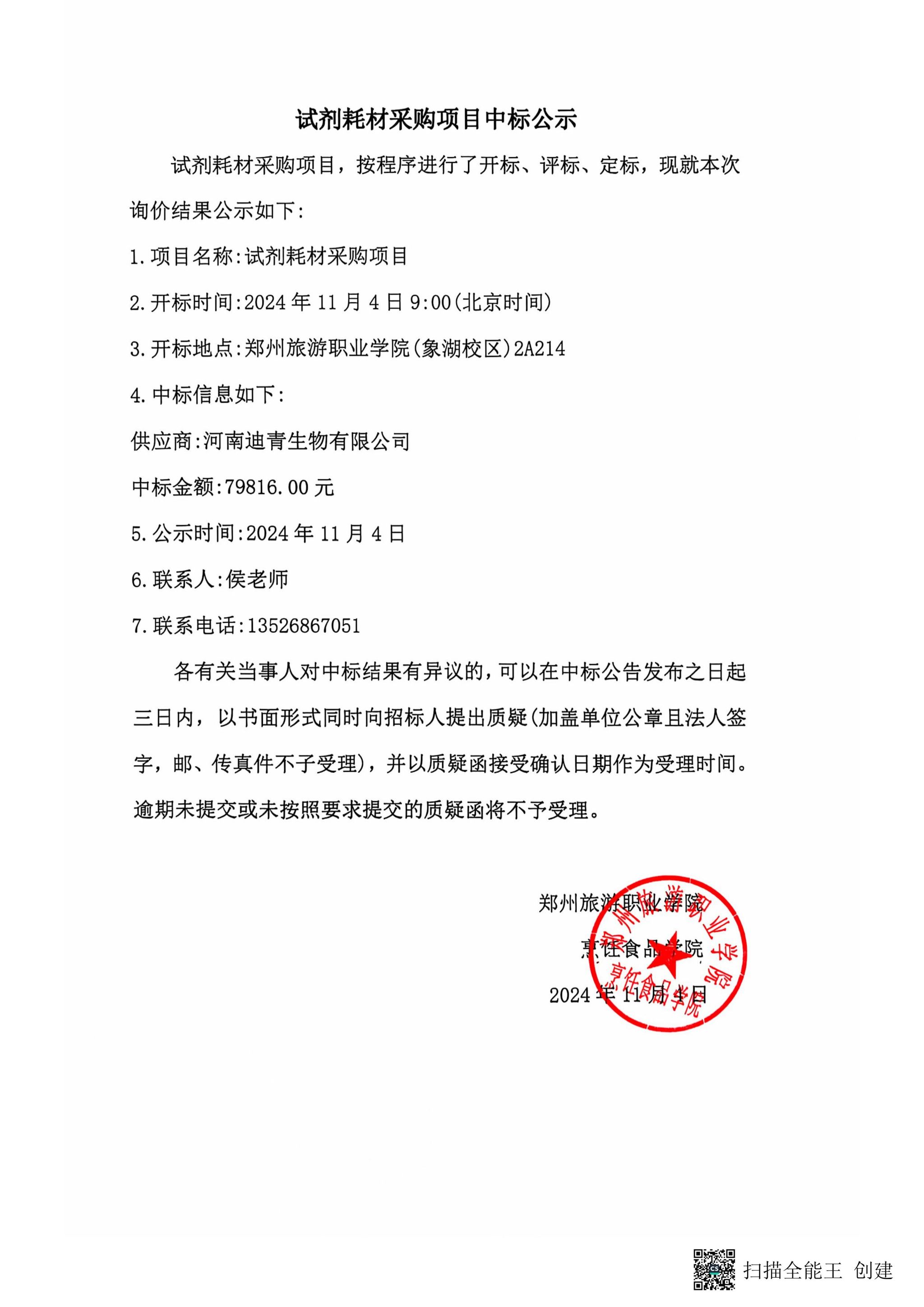 试剂耗材采购项目中标公示