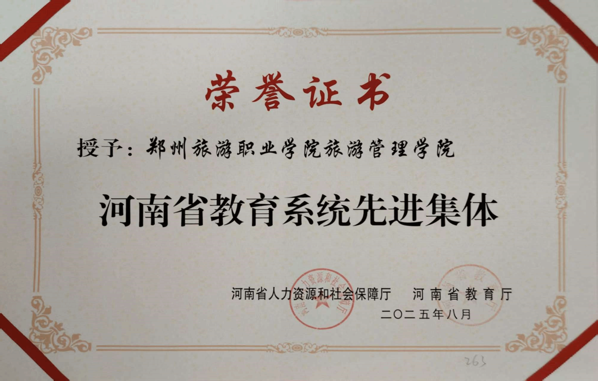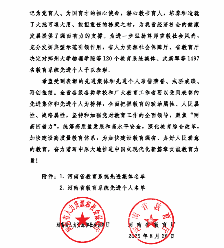 近日,河南省人力资源和社会保障厅、河南省教育厅联合下发文件,对一批在教育事业改革和发展中取得显著成绩的先进集体和先进个人进行了表彰。pp电子旅游管理学院荣获“河南省教育系统先进集体”荣誉称号,国际旅游学院王萍教授荣获“河南省优秀教师”荣誉称号。