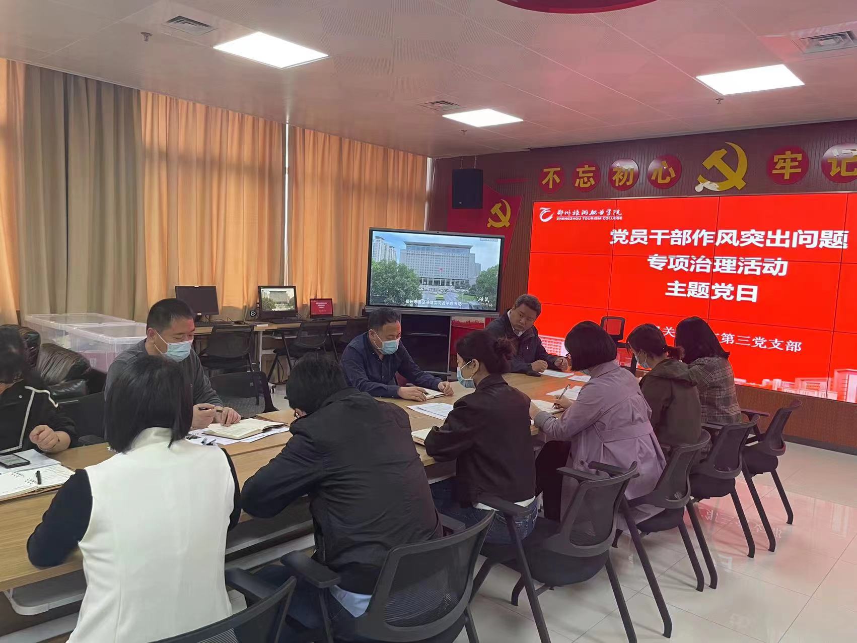 4月30日上午10:00,机关党总支第三支部在行政楼11楼会议室开展主题党日活动。支部全体党员按照校纪委工作部署,结合pp电子“能力作风建设年”活动开展一次警示教育。支部纪检委员黄中组织大家认真观看廉洁教育视频《“硕鼠”现形记》,之后大家展开热烈讨论。
