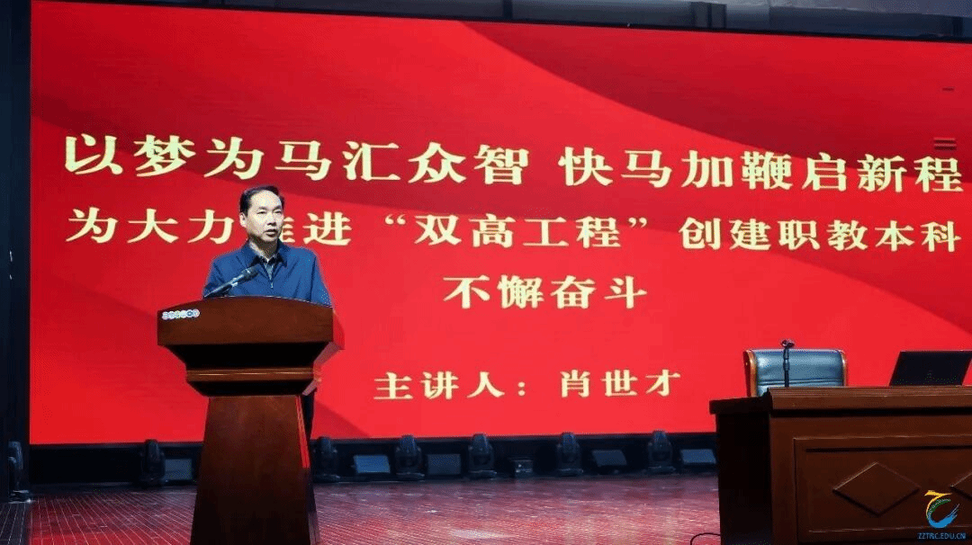 上午,校长肖世才出席启动仪式并作动员讲话,以《以梦为马汇众智 快马加鞭启新程——为大力推进“双高工程”创建职教本科不懈奋斗》为题,立足学校发展全局,对全体教职工提出三点明确要求:一是要观大势、抓机遇,在清醒审视中明晰方向;二是要扬优势、明任务,在务实作为中夯实基础;三是要聚共识、强落实,在协同奋进中开创新局。他强调,全体教师要以此次培训为契机,以学校“双高”建设为重要抓手,凝心聚力、真抓实干,全力推进职教本科创建工作,为学校高质量发展注入强劲动力。