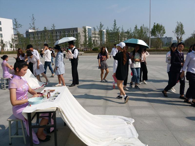2018年5月9日下午,社会服务系在行政楼前中心广场举行了一场茶文化推广活动。社会服务系休闲专业教研室全体教室、17休闲服务班全体同学以及社会服务系茶艺表演队出席了本次活动。