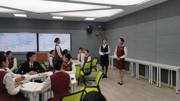 民航实训中心建有A330双通道模拟客舱、民航空港业务综合模拟中心、航空CBT系统实训室、动感双通道模拟客舱、航空礼仪实训室、形体舞蹈实训室、体能训练室、化妆展演实训室等9个实训室,总用房面积1200余平方米。