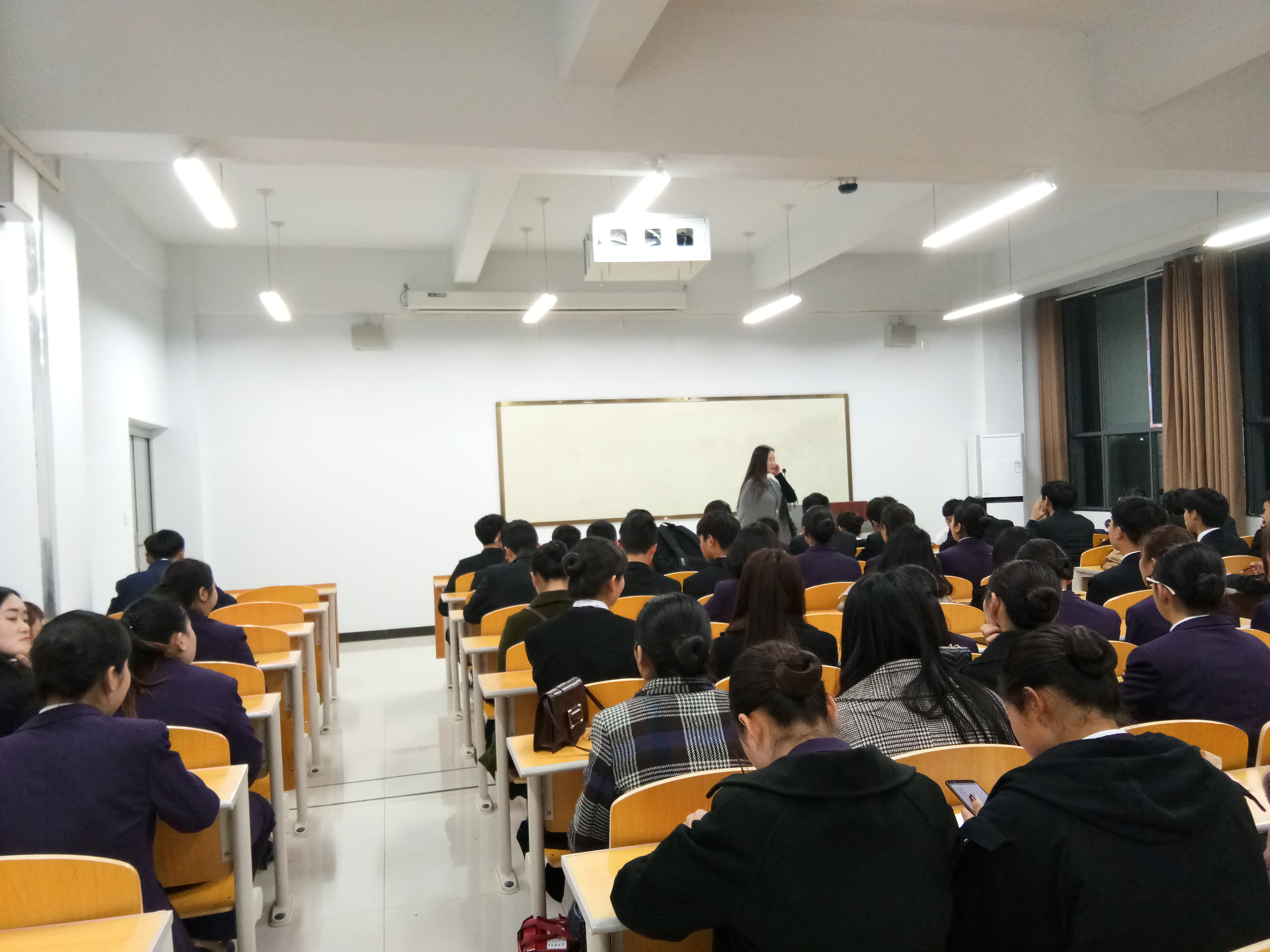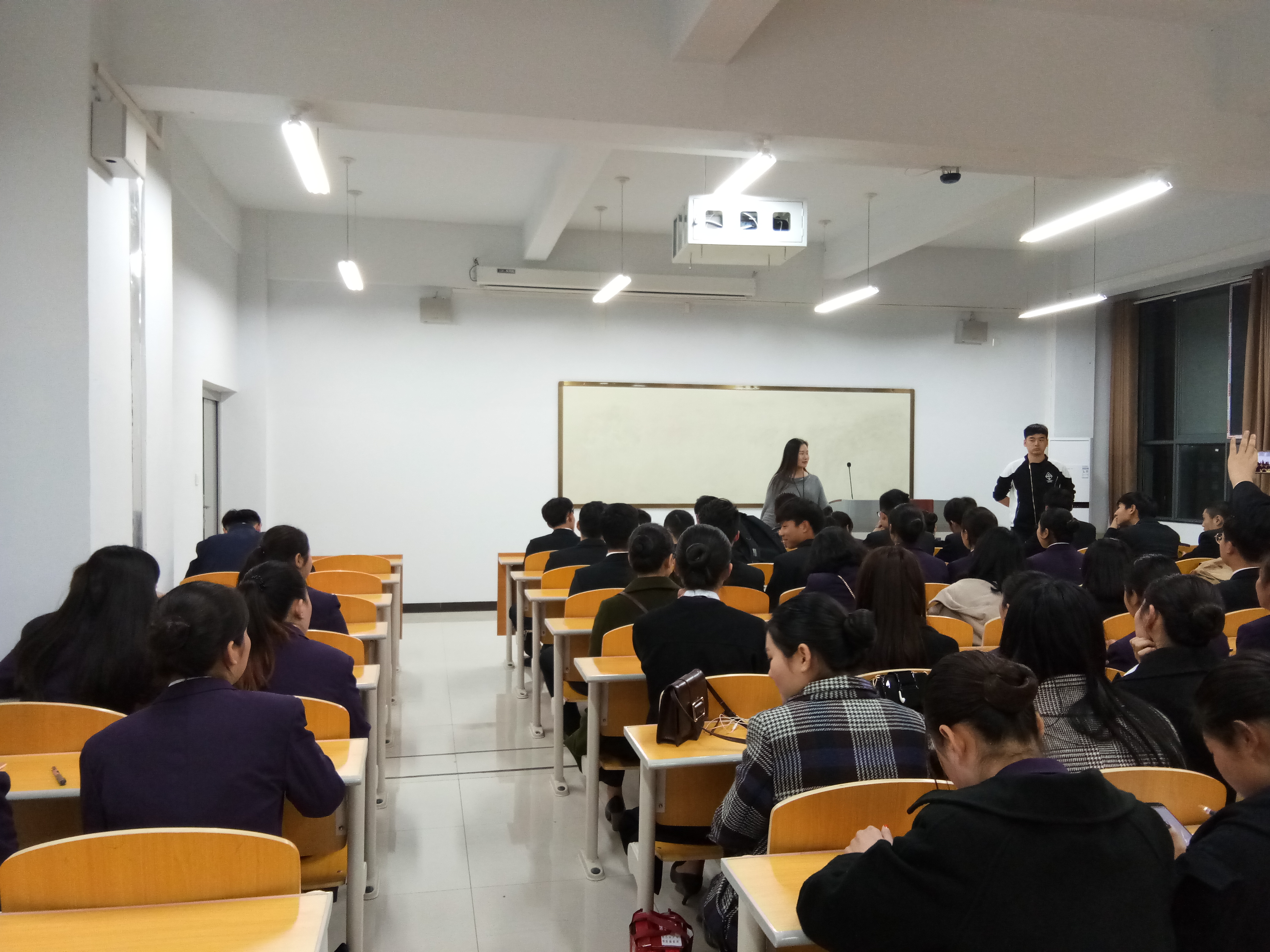 2018年3月22日晚8点,社会服务系团总支在1号教学楼A507举行了第二次学生干部礼仪培训会。