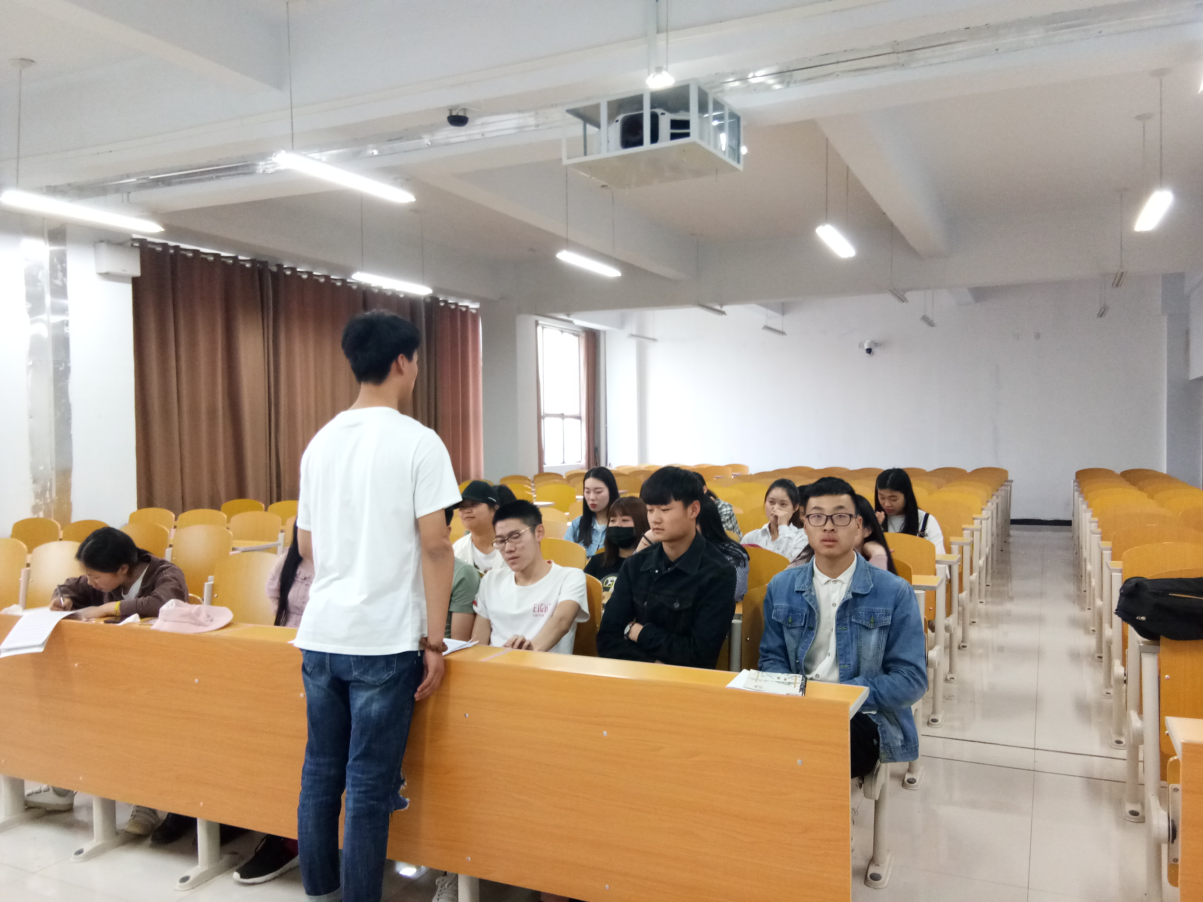 2018年4月17日下午6点,社会服务系团总支在1号教学楼A507教室召开学生干部竞聘报名会。本次会议由组织部部长袁飞亚主持,25位团总支干部参加。
