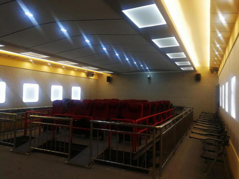 民航实训中心建有A330双通道模拟客舱、民航空港业务综合模拟中心、航空CBT系统实训室、动感双通道模拟客舱、航空礼仪实训室、形体舞蹈实训室、体能训练室、化妆展演实训室等9个实训室,总用房面积1200余平方米。