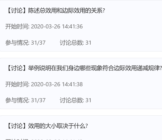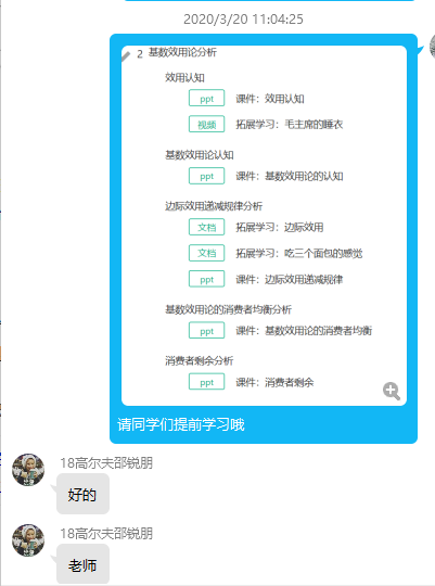 应用经济学课程采用腾讯课堂+职教云相结合的线上教学模式,由于线上教学没办法进行面对面沟通交流,所以我把整个教学过程分成课前预习、课中直播讲解和课后巩固三个阶段进行,以确保学生对知识的掌握。