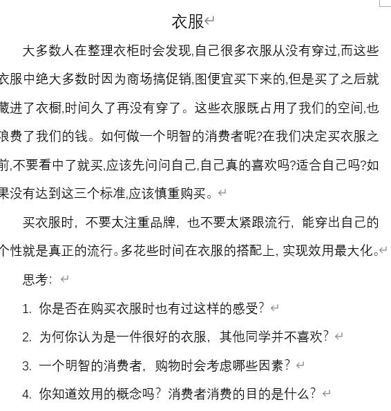 课后主要通过作业检验学生对知识的掌握,本次课的作业是很多学生在日常生活中都有经历的案例分析题,通过对作业的批改得知学生对本节课知识点的掌握还是不错的。