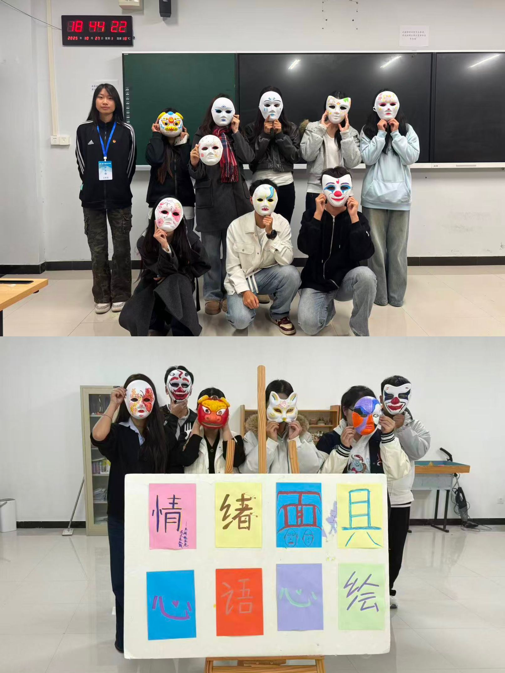 目前,20余件优秀面具作品已在学校心理健康中心集中展出。此次活动不仅为学生提供了情绪表达的创意平台,更助力营造关注心理健康的校园氛围,获师生广泛好评。