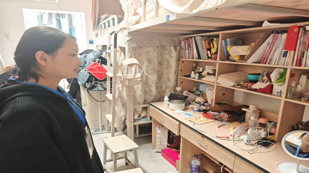 活动中,通过排查是否连接取暖器、暖手宝等情况;仔细检查书桌抽屉,重点核查加热棒、大功率取暖器等冬季高风险违禁电器;逐一查看床铺周边,提醒同学们不要将充电设备放在被褥内。排查中,新生学长不仅对违禁品“零容忍”,更化身“安全宣传员”,看到违规串联插线板,当场讲解过载用电的火灾风险,同时耐心提醒同学,冬季使用电器时需保持周边无遮挡,做到“人走断电”,避免因电器故障引发安全问题。