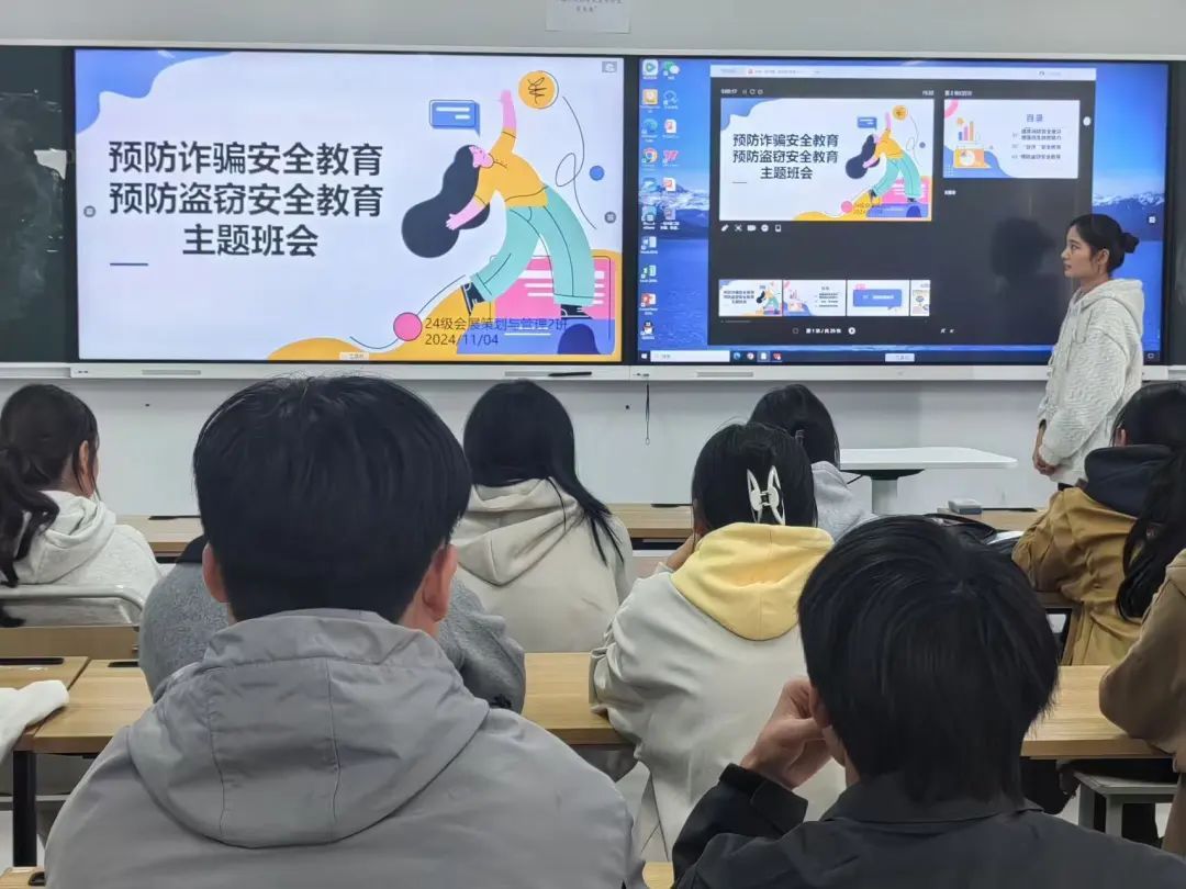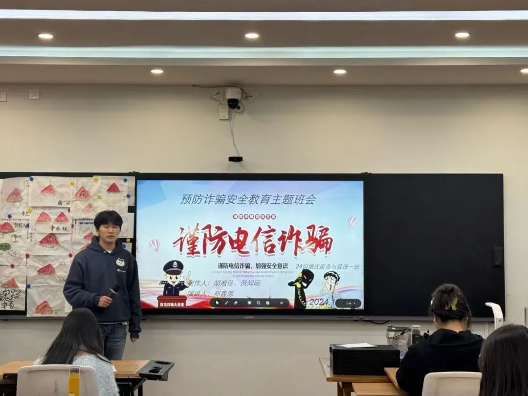 班会上,各班班主任从诈骗,盗窃,消防三个方面来讲解了安全的意义以及如何维护自己的切身利益,使学生了解了安全事故的重要性,强调了学生们应该要有自我安全保护的意识。在盗窃方面,班主任详细介绍了常见的盗窃手段和防范措施,提醒同学们要妥善保管好个人财物。在诈骗方面,班主任通过播放一系列真实案例的视频,让同学们深刻认识到诈骗带来的严重危害。在消防安全方面,老师结合生动的图片和视频,向同学们讲解了火灾的预防、火灾发生时的应急处理以及如何正确使用灭火器等消防知识。通过对这三个主题的讲解,同学们对安全事故有了深刻了解。