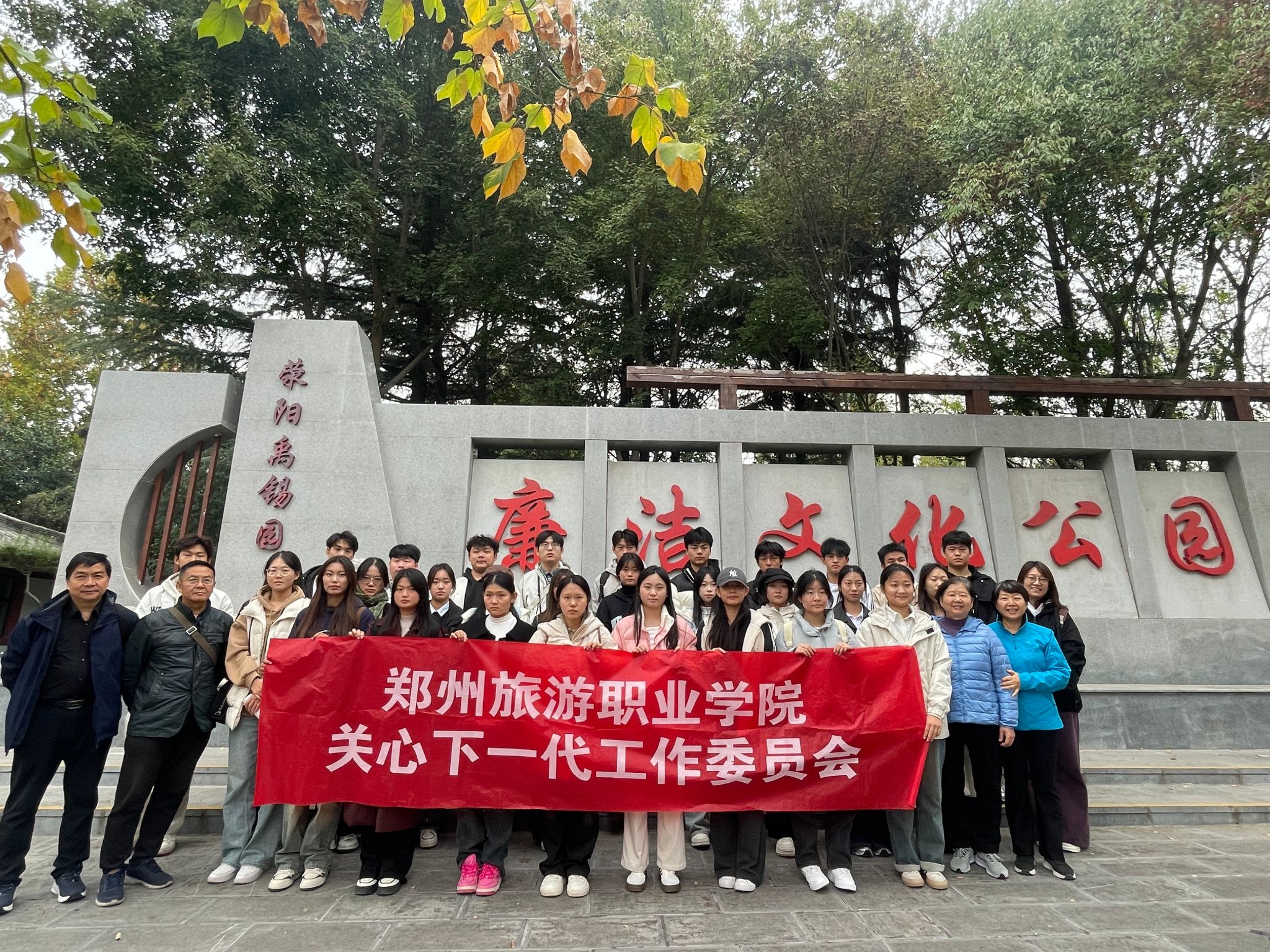 11月9日,校关工委联合现代服务学院党总支带领40名青马学员赴荥阳豫西抗日根据地、禹锡公园和廉洁文化公园开展爱国主义教育主题活动。本次活动由学校关心下一代工作委员会主办,现代服务学院党总支承办。