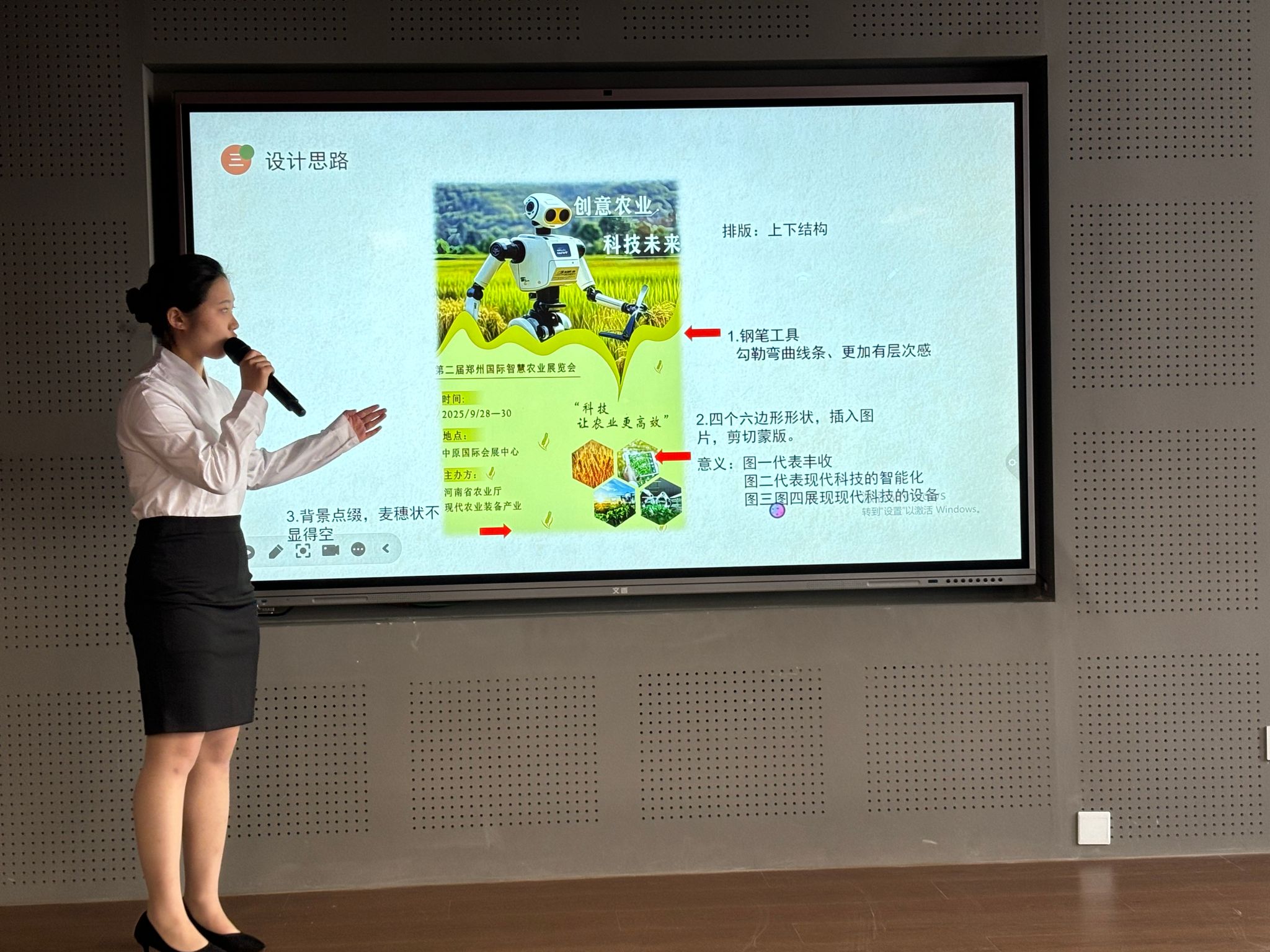 为了能够让同学们锻炼自己的创新思维,鼓励年轻人关注农业科技的发展,推动会展行业与设计艺术的深度融合,现代服务学院于11月20日在1A302教室举办“2024创意杯会展策划与管理专业技能竞赛”。出席本次大赛的评委老师有现代服务学院会展策划与管理专业教研室主任张玮,会展策划与管理专业的老师于婕、段会利、朱瑞平、李欣欣等。