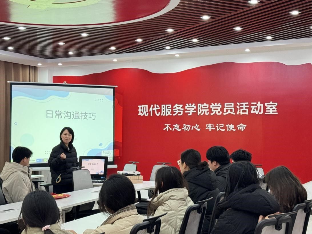 为了帮助学生学习沟通技巧,提升专业素养和实践能力。12月11日,现代服务学院于1A208教室开展了一节有关沟通技巧的课程。本次课程由刘好好老师主讲,全体青马学员和学团干部参加。