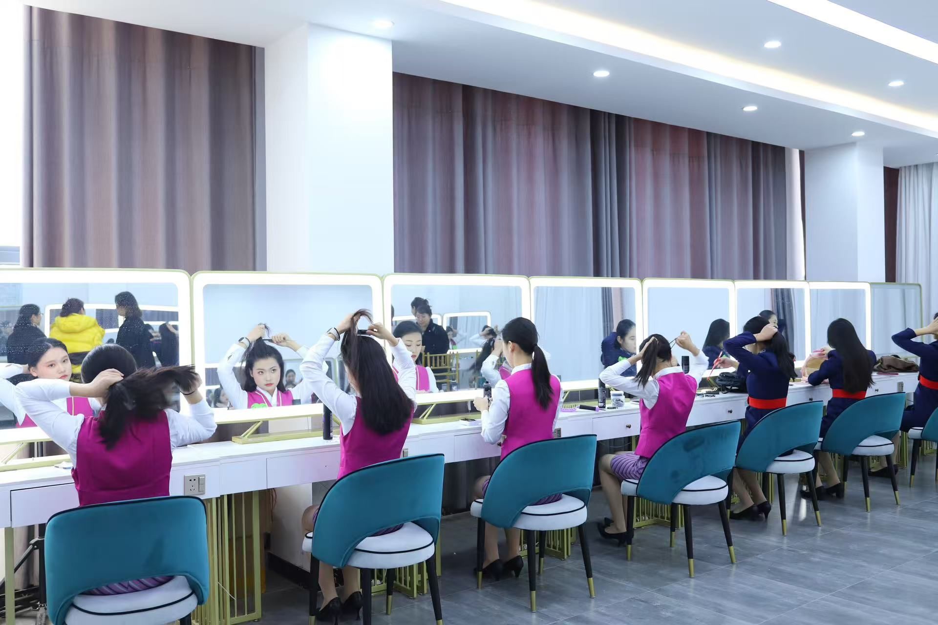 41名选手从171位24级空中乘务专业、22级五年制空乘专业学生中脱颖而出。化妆、发型,仪容仪表是此次空乘职业形象大赛的重要考核内容。妆容需要自然得体,既不过分浓重,也不失精致优雅;男生的发型需要保持整洁利落,前不遮额、侧不掩耳、后不触领,适中的厚度和蓬松度让人眼前一亮,而女生们,则需要将长发盘起,短发整齐梳理,确保发型整洁度、对称性、高度与位置的完美呈现。同时,发型还需具备职业气质,干练、高效且专业,让人一眼就能感受到空乘人员的专业素养和服务意识;服装则需符合空乘职业特点,既舒适又美观,展现出空乘人员的专业形象。