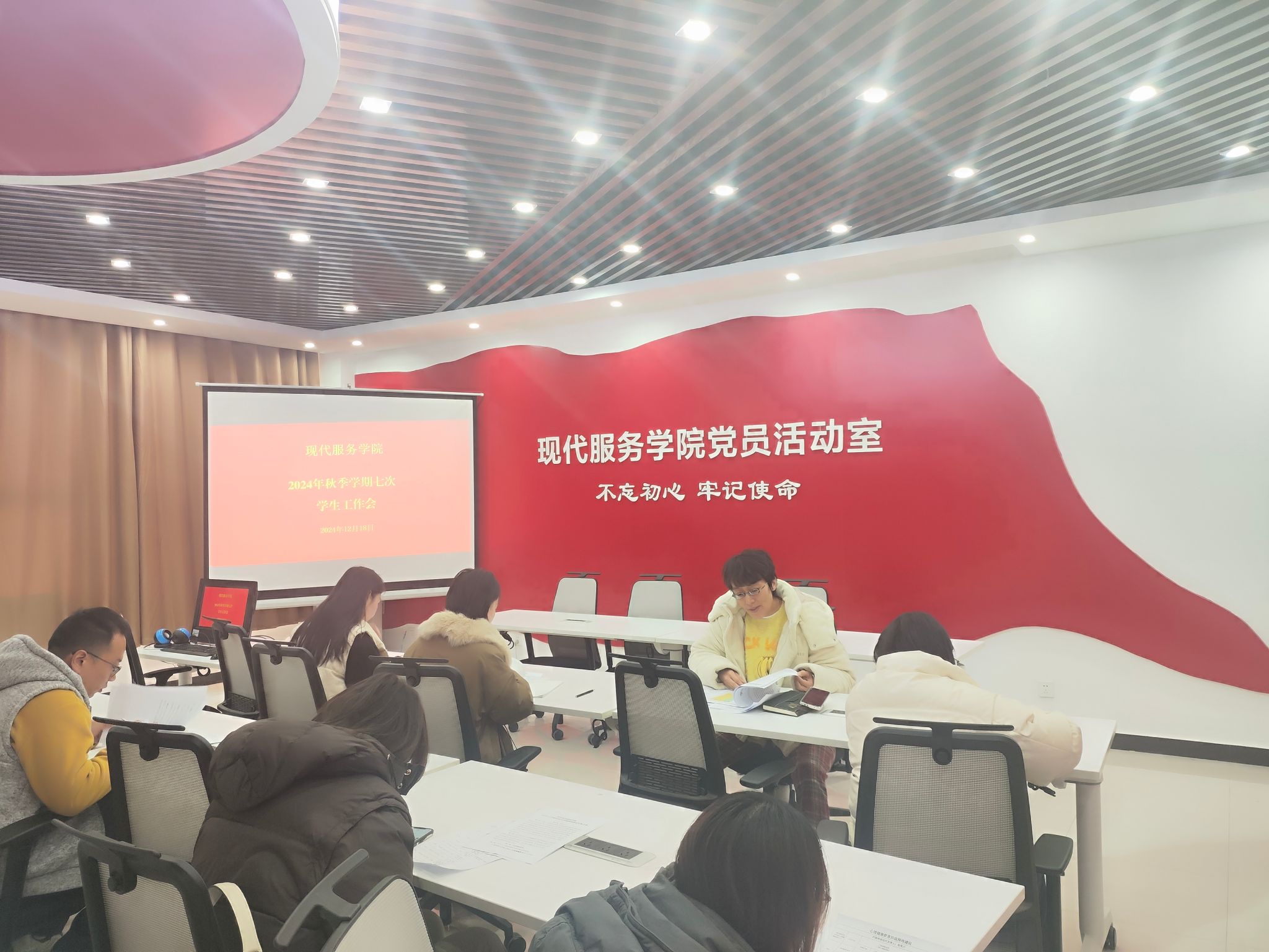 近日,现代服务学院利用学管例会对近期心理异常学生的情况进行了集体研判。学院领导、学院党总支副书记岳正阳、团总支书记段会利以及辅导员参与了此次会议。
