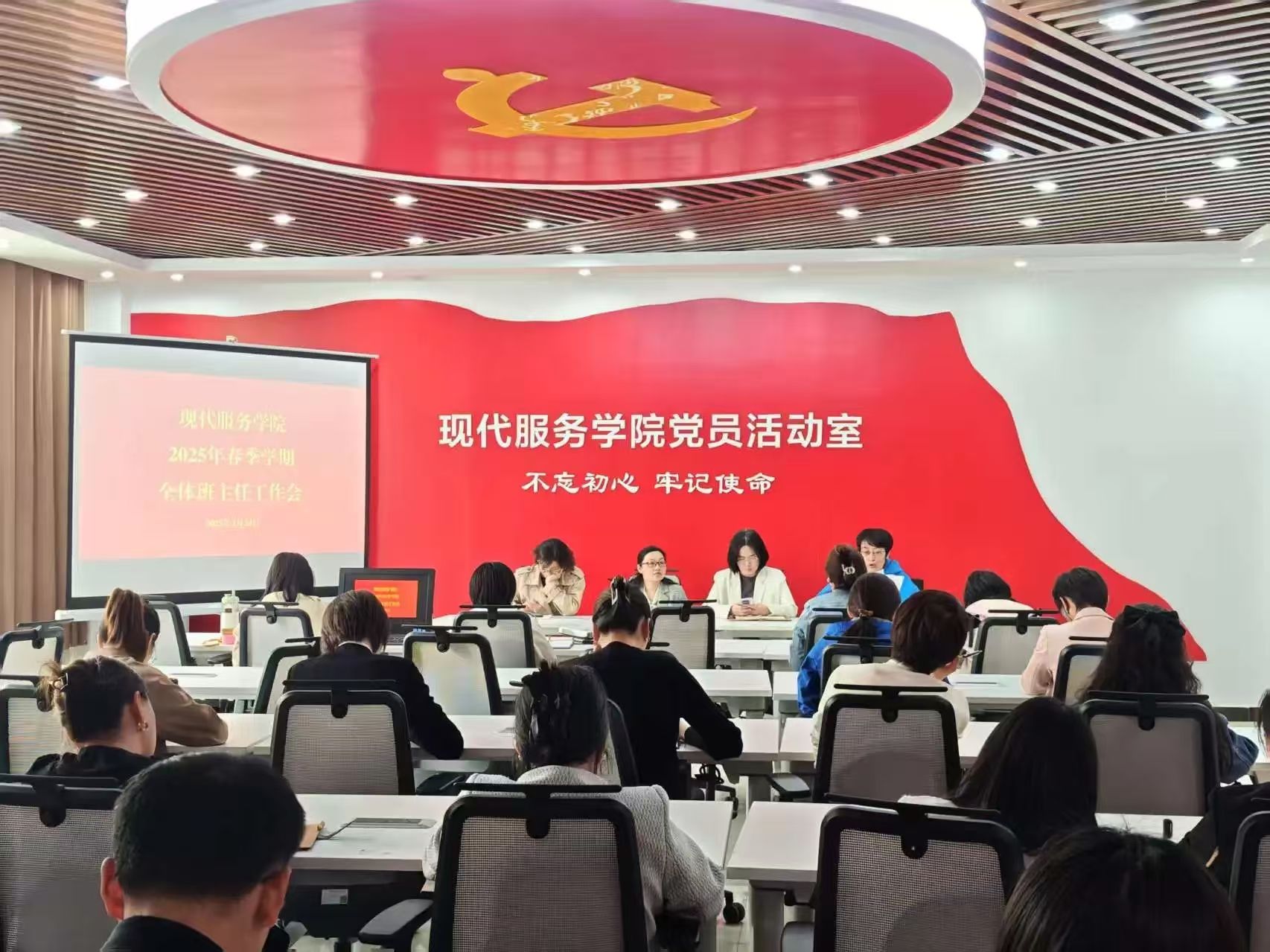 为进一步加强班级管理,提升班主任工作水平,确保这学期各项工作顺利开展。3月26日下午,现代服务学院在1A教学楼208召开了2025年春季学期班主任工作会议。学院院长许向蒲、党总支书记白娜、副院长定琦、副书记岳正阳,以及全体班主任参加会议。