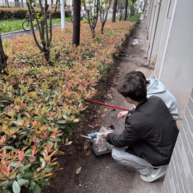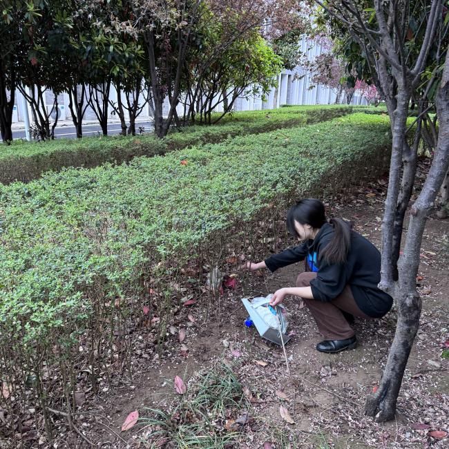 志愿者们手持垃圾钳、扫帚、环保袋等工具,分组奔赴学院周边绿化带区域。活动中,师生们化身“环境卫士”,对灌木丛中的烟头、纸屑,草坪上的塑料瓶、包装袋,以及树根处的枯枝落叶展开“地毯式”清理。大家分工协作,默契配合:有的俯身钻进低矮灌木中拾捡隐蔽垃圾;有的细心挑出嵌在泥土中的细小杂物;有的合力搬运堆积的断枝落叶。经过两天的辛勤劳动,原本藏污纳垢的绿化带焕然一新,绿意盎然的草木与整洁的环境相映生辉。