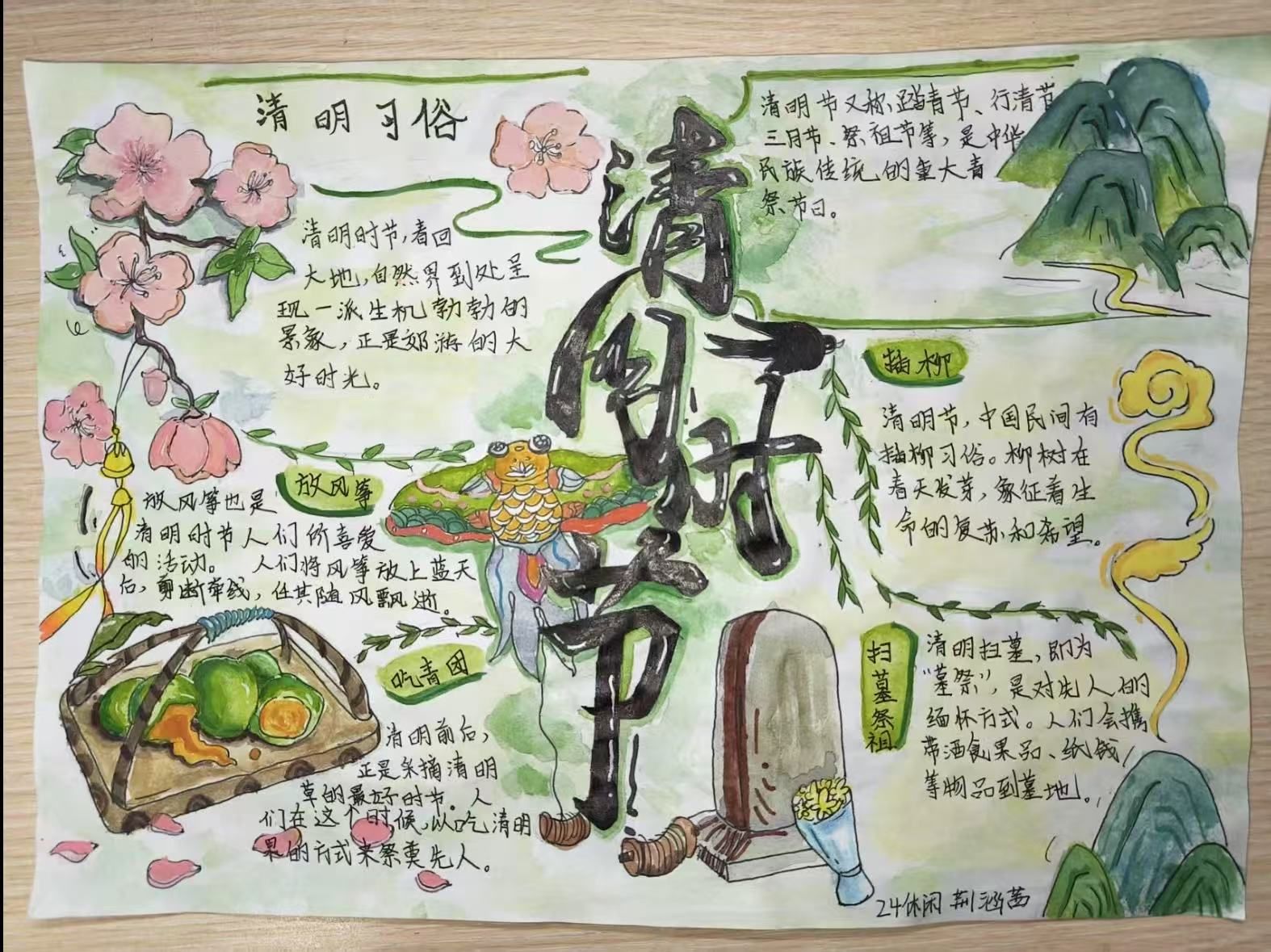 在春和景明、万物复苏的时节,一场以“纸墨寄思,笔绘清明”为主题的手抄报活动火热开展。同学们纷纷拿起画笔,在一张张白纸上精心创作,一幅幅饱含深情与创意的手抄报如雨后春笋般涌现,为传统的清明节赋予了新的活力与色彩。