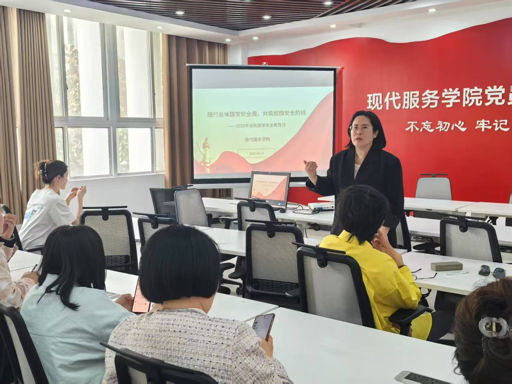 现代服务学院于4月17日在1A208教室开展“践行总体国家安全观,共筑校园安全防线”专题学习活动。