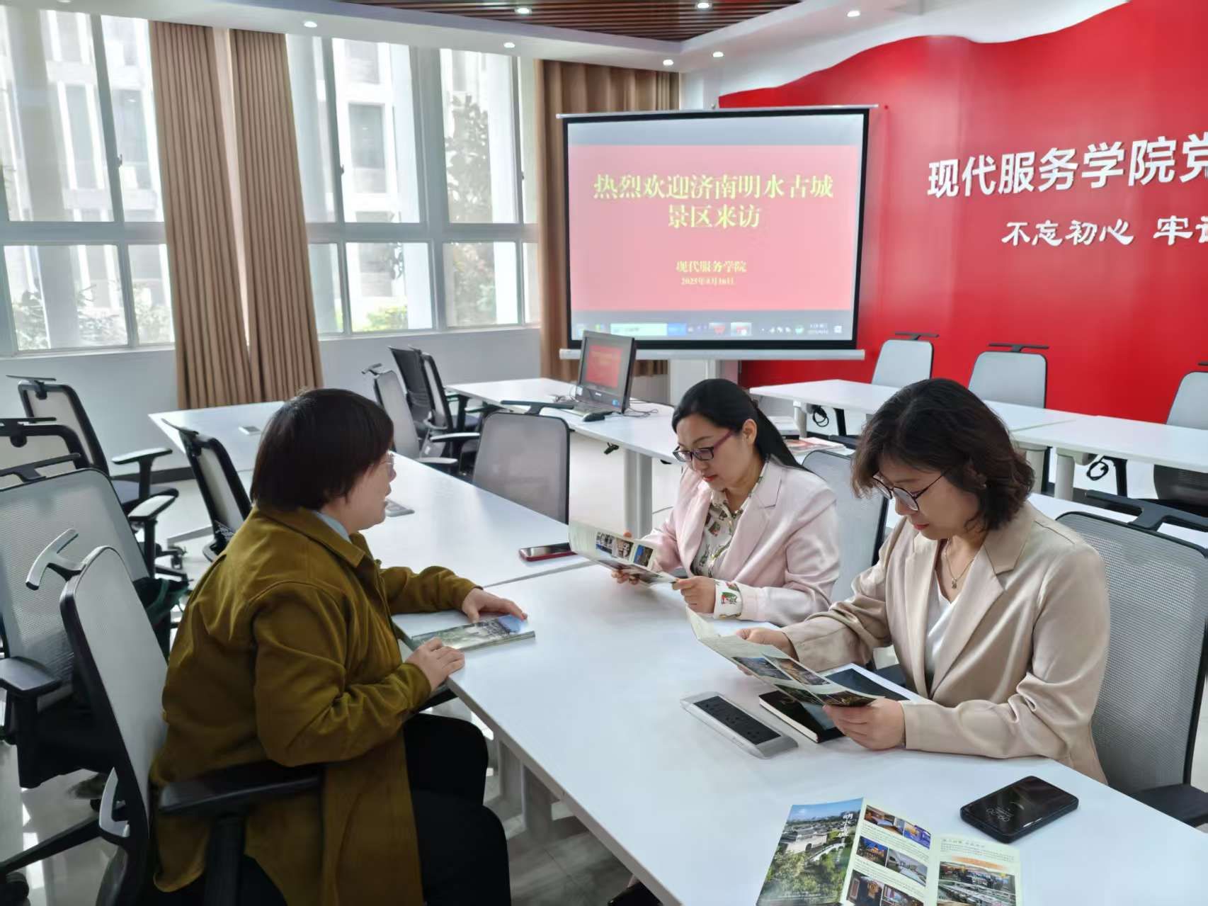 为积极应对就业新形势,拓宽学生就业渠道,深化产教融合,有效衔接高校人才培养与市场人才需求,促进毕业生高质量充分就业,现代服务学院于4月15日携手济南市章丘明水古城旅游发展有限公司开展访企拓岗座谈活动,现代服务学院院长许向蒲、副院长定琦参加本次活动。