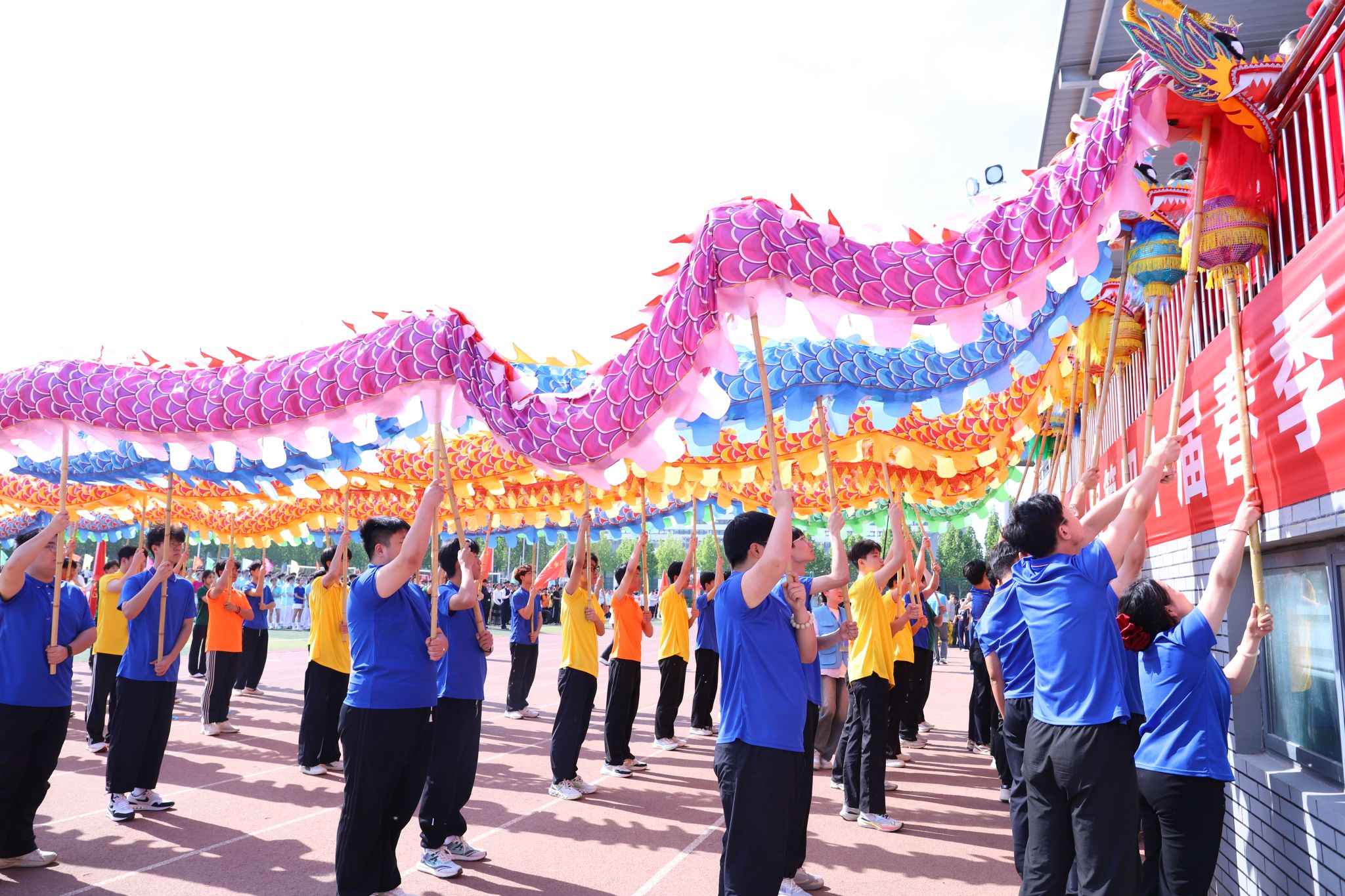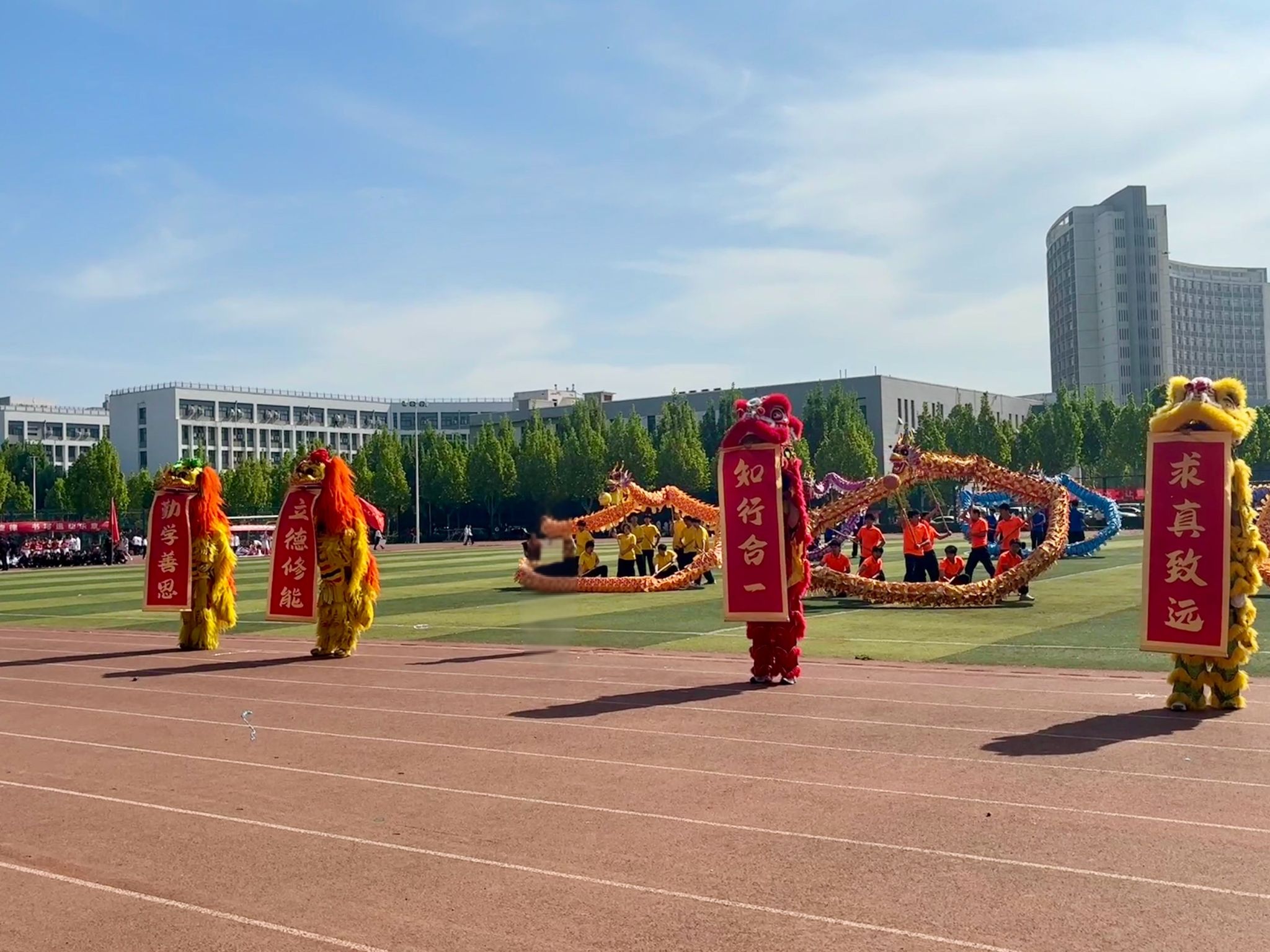 开幕式上,各代表队精神抖擞地列队入场,校长肖世才致开幕词,勉励运动员赛出风采、赛出水平。在极具传统文化特色的点睛仪式上,校领导为祥龙执笔点睛,寓意“眼观六路、鹏程万里”“钢筋铁骨、顶天立地”“福星高照、国泰民安”,现场掌声雷动。校党委书记王艳红正式宣布运动会开幕,七条祥龙腾跃舞动,将气氛推向高潮。