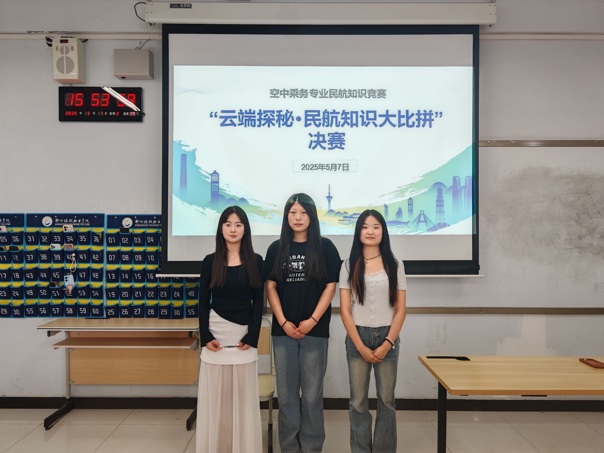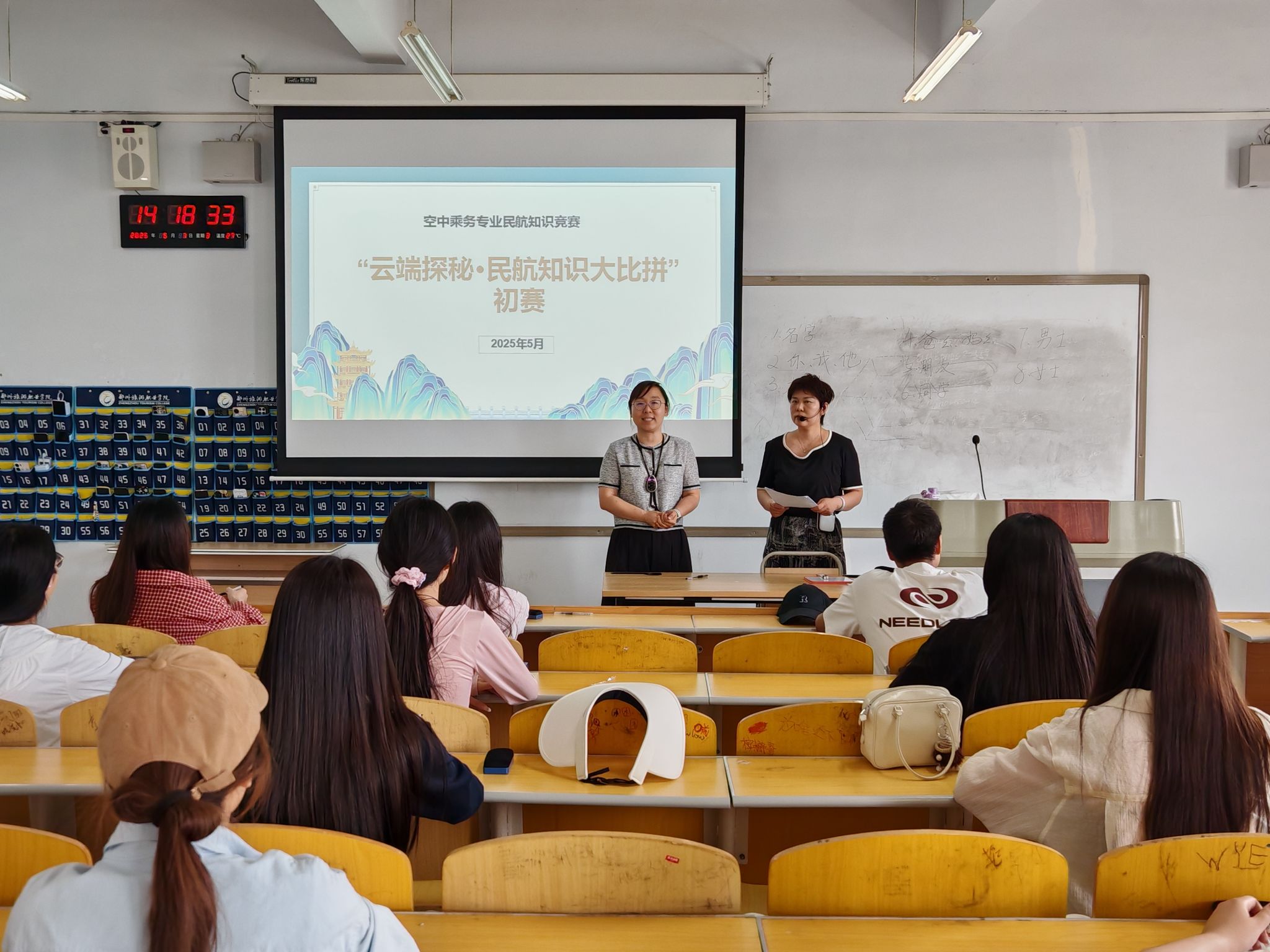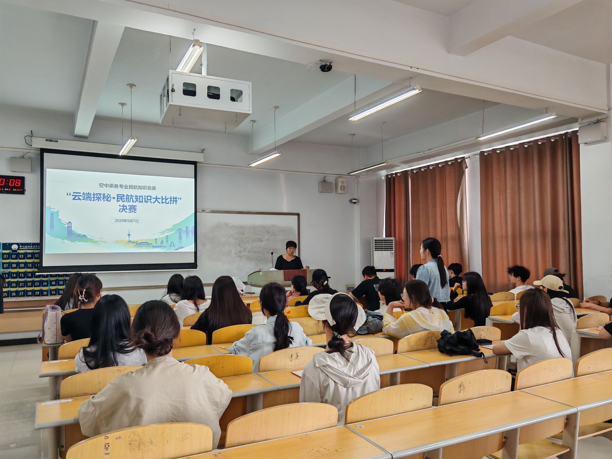 2025年5月7日下午2点,一场别开生面的“云端探秘·民航知识大比拼”活动在1号教学楼505教室精彩上演。此次活动面向大一空中乘务专业全体学生,旨在夯实学生民航知识基础,提升专业素养,为他们的未来职业发展助力。 在活动前期,筹备工作有条不紊地展开,专业教师精心出题,题目范围广泛,涵盖民航概论、民航服务礼仪、航线地理、民航服务心理学、民航客票销售等多个关键领域,确保竞赛内容的专业性和全面性。