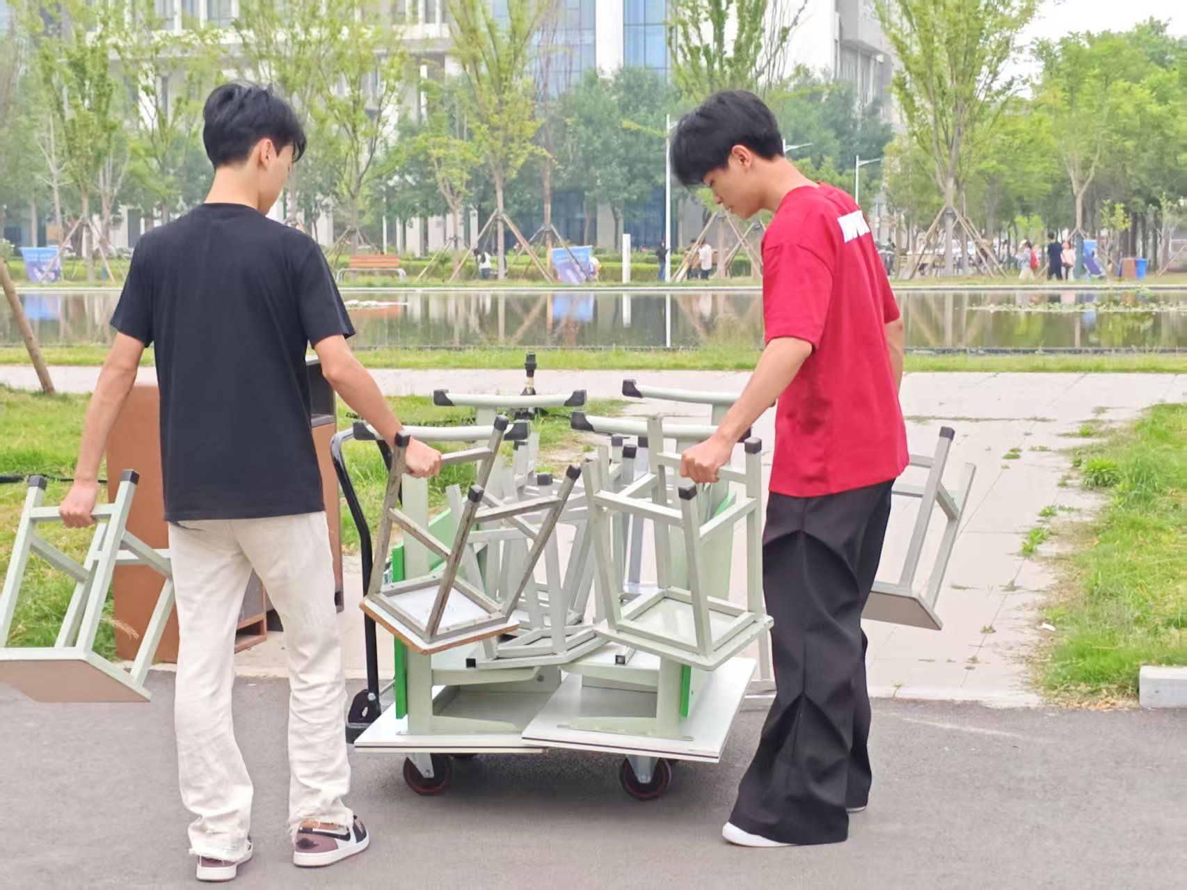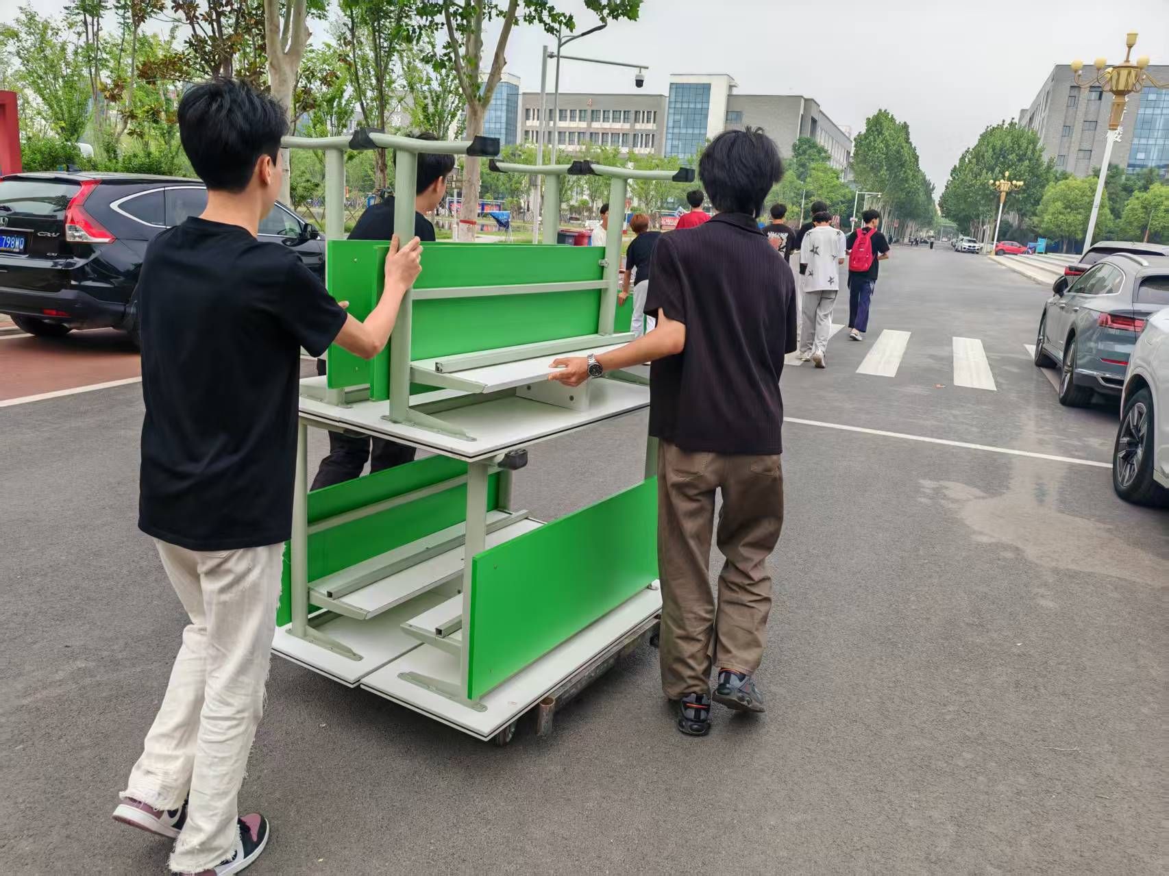 活动筹备期间,现代服务学院团学干部提前进驻场地,从搬运桌椅到布置展位,全程高效协作。志愿者们分工明确,有的化身“搬运能手”,合力运送物资;有的担任“场务专员”,反复调整展位细节,确保双选会现场整洁有序。尽管汗水浸透衣衫,但大家始终以饱满的热情投入工作,为双选会的顺利开幕打下坚实基础。
