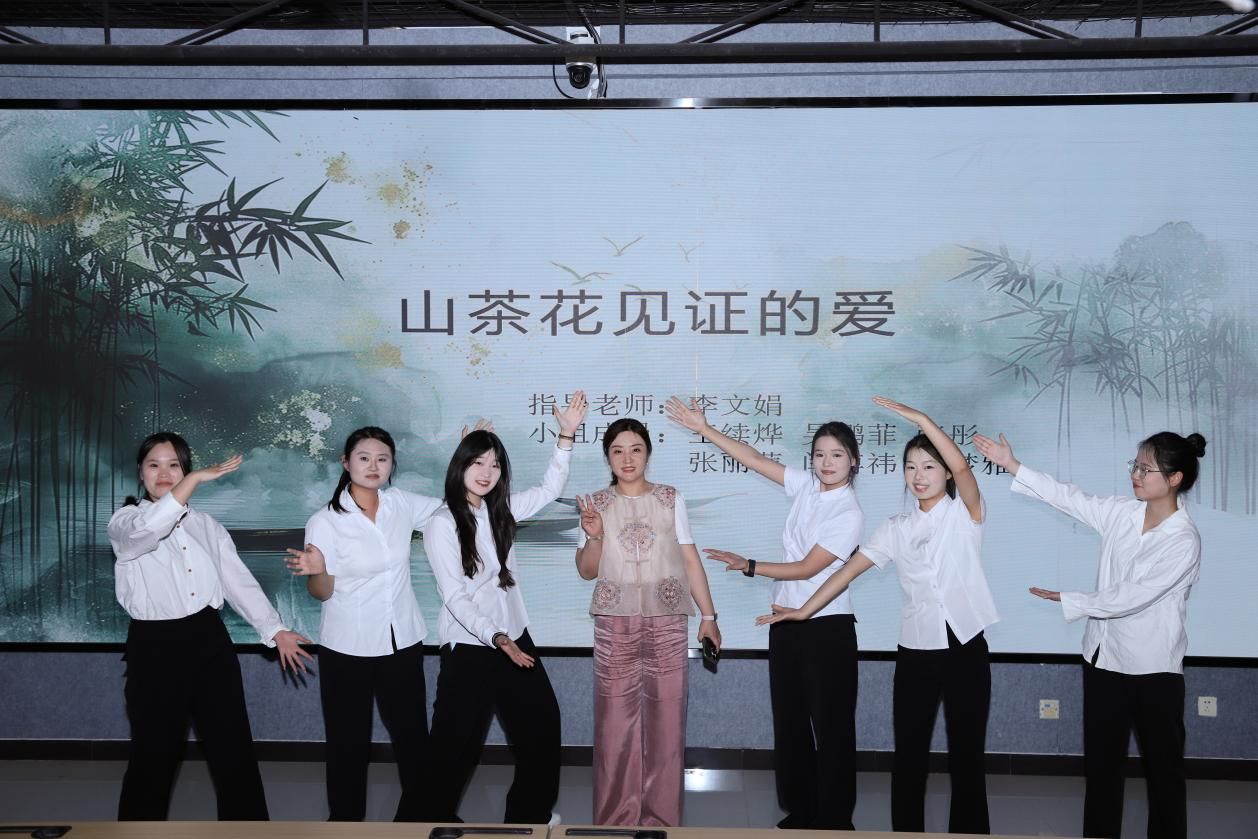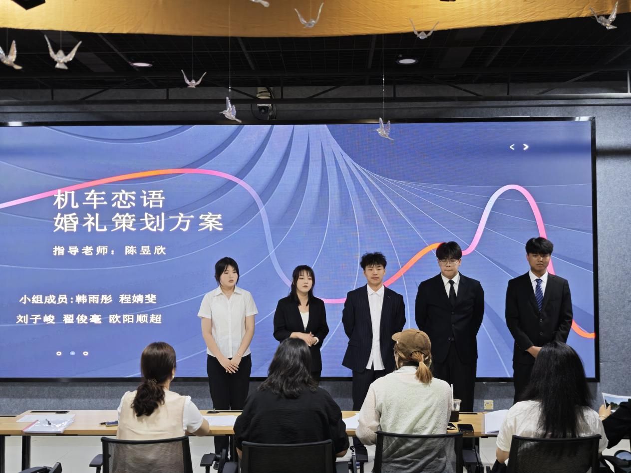 本次毕业设计共分12组,同学们依次上台展示自己的毕业设计作品。这些作品充分展现了同学们的专业素养和创新能力。同学们策划的婚礼主题多种多样,有中式庭院风的《兰梦同归》《山茶花见证的爱》;有线下大热剧院风格的《幕启情章》《卿与一生》;有法式岛屿风格的《屿你》;有以双人成行游戏为主题风格的《Tow souls One journey》;有酷炫机车风格的《机车恋语》;有宋制中式风格的《梦华录》;有乡村气息风格的《风吹麦浪》;有美食风格的《味爱同谋》;有森系风格的《林深时见鹿》《森境恋歌》。每一个主题都独具匠心,从场地布置到流程安排,从色彩搭配到道具设计,都体现了同学们对婚庆服务细节的深刻理解和创新思维。