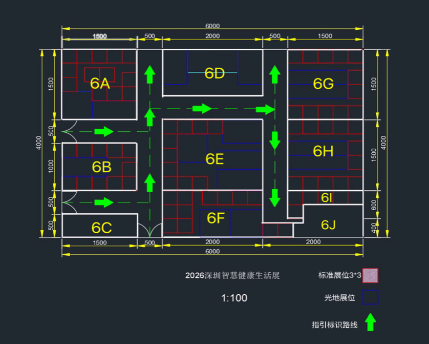6G健康食品专区(225㎡); 6H养生保健区(225㎡);