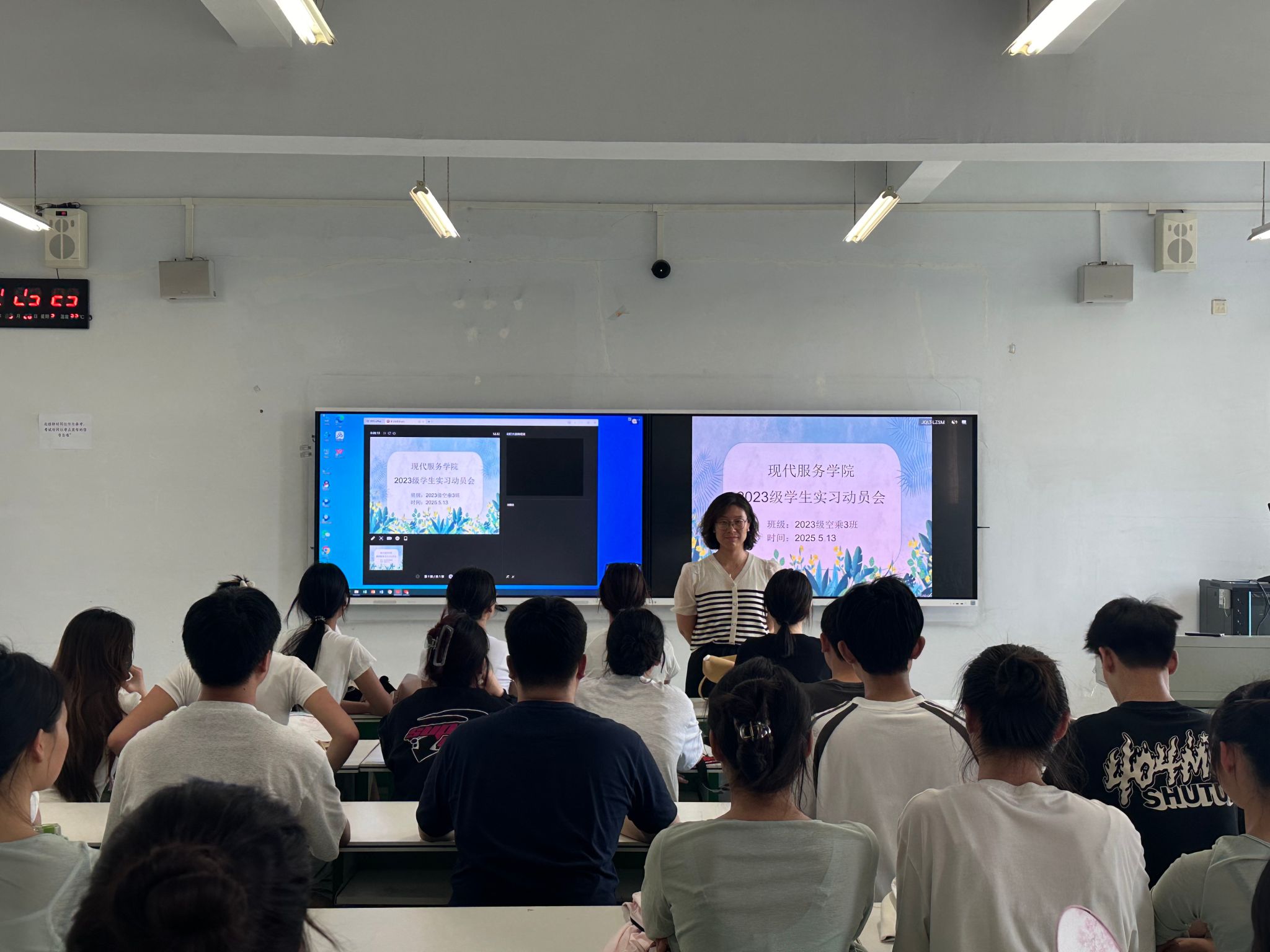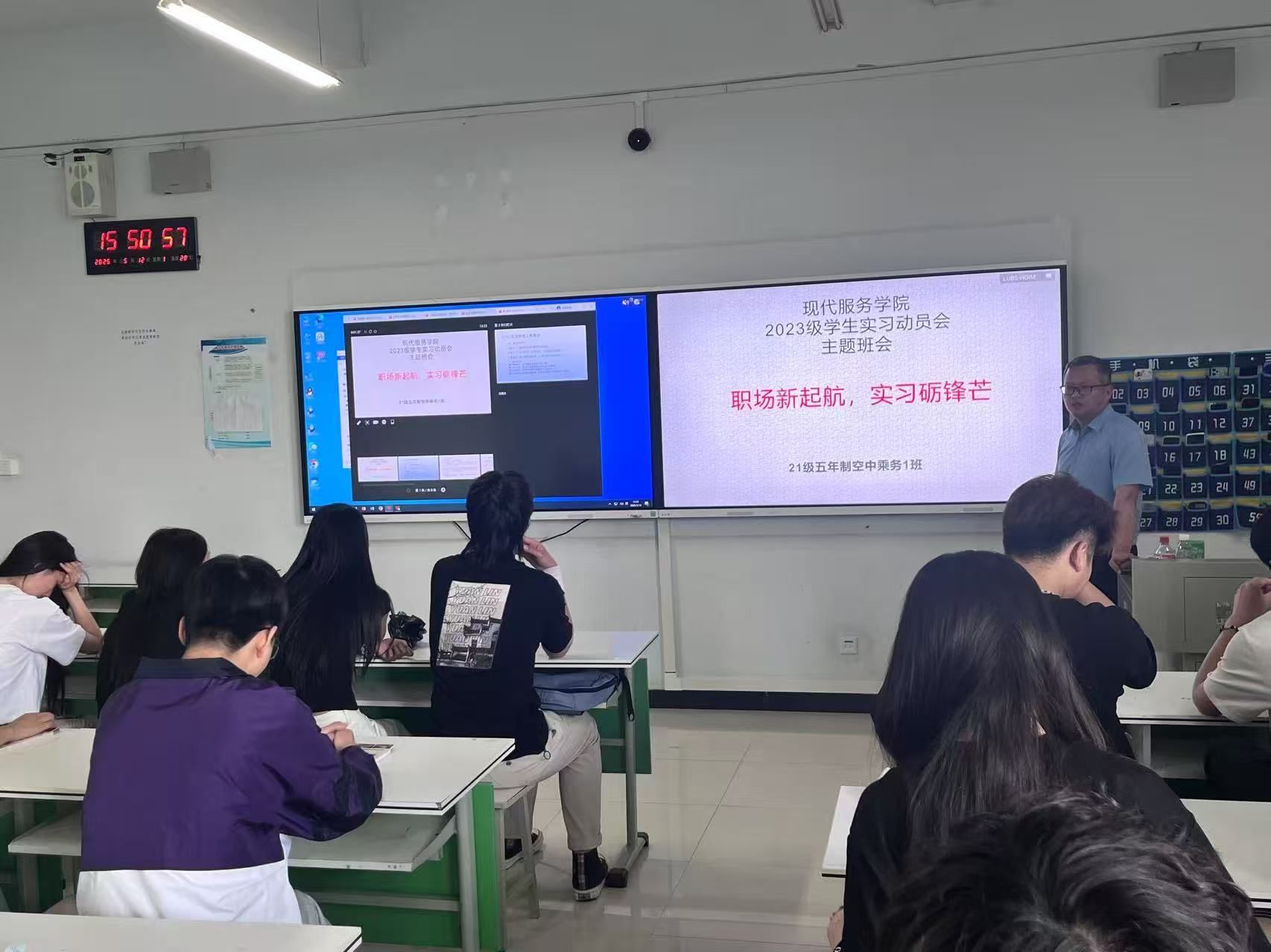 为助力同学们顺利完成从校园到职场的过渡,切实提升实习效果,现代服务学院于5月13日分班级精心筹备并召开了以“职场新起航,实习砺锋芒”为主题的实习动员会。