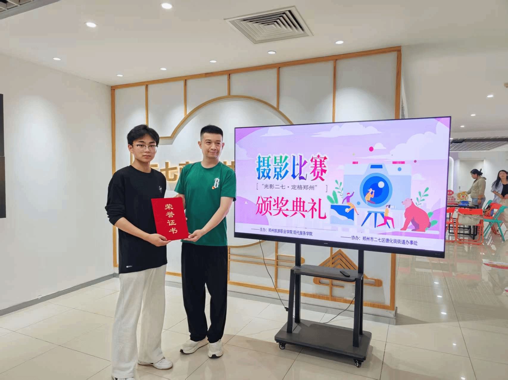 5月21日,现代服务学院与二七区民主路社区联合举办的“光影二七·定格郑州”主题摄影比赛颁奖仪式在二七区商圈党群服务中心正式举行。