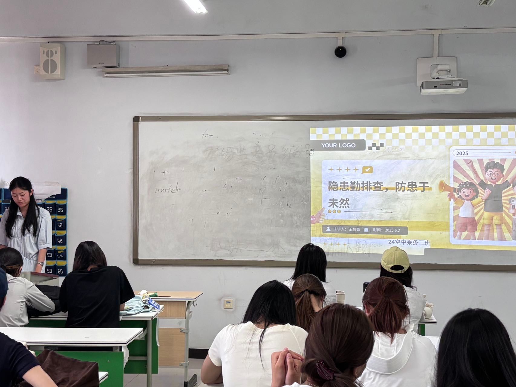 为增强同学们的安全防范意识,提升隐患排查与应急处理能力。现代服务学院于6月3日在1A教学楼开展“隐患勤排查,防患于未然”主题班会。