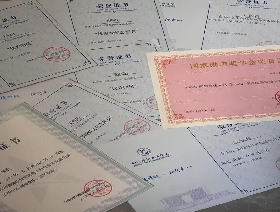 王铭阳,22级会展策划与管理1班。在过去的时光里,她以优异成绩荣获2024年度国家励志奖学金,并获评“三好学生”“优秀团支书”等荣誉称号,展现了新时代青年全面发展的精神风貌。