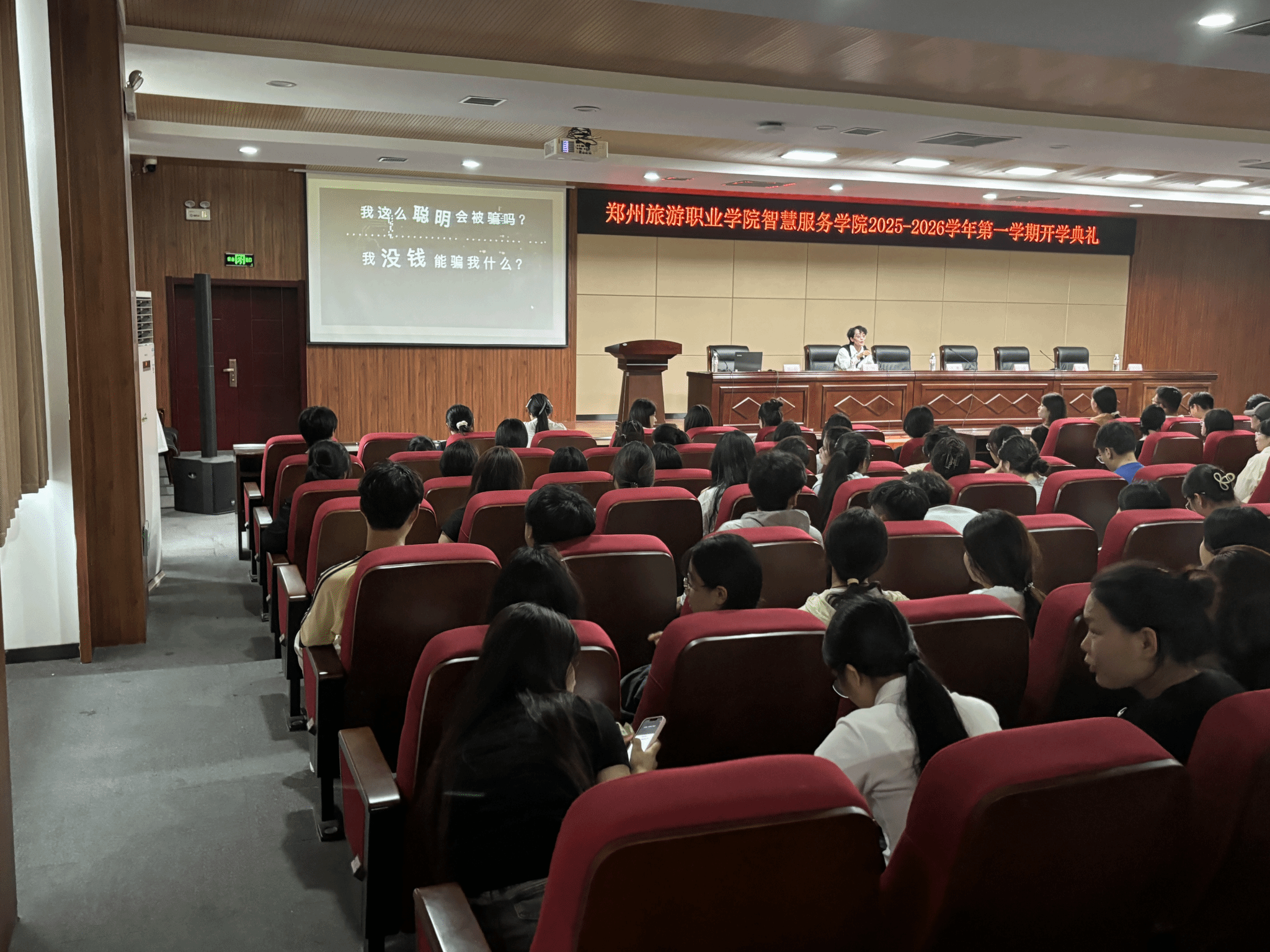 2025年9月7日,智慧服务学院2025-2026学年第一学期开学典礼在综合楼C座4楼报告厅隆重举行。院长许向蒲、党总支书记白娜、副院长定琦参加典礼,党总支副书记岳正阳主持。