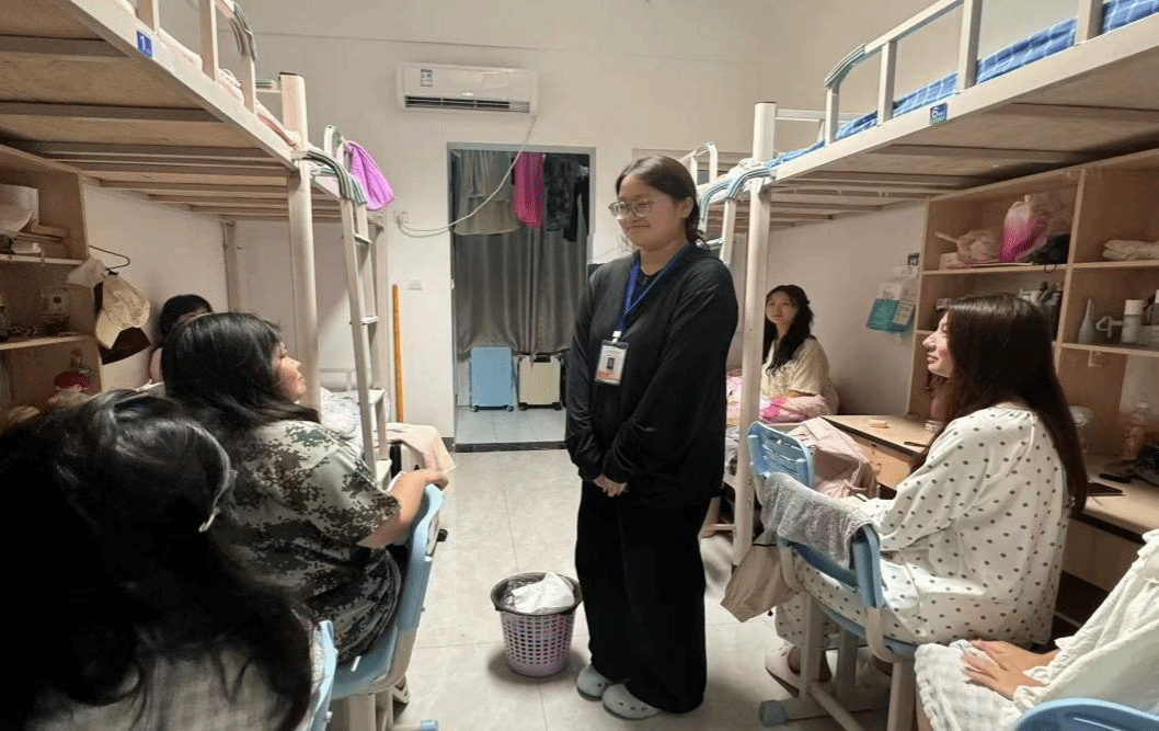 新生宿舍里,学长们热情地与他们打招呼,并耐心询问新生们的入住感受,仔细查看宿舍的生活设施是否齐全、使用是否顺畅。在交流过程中,学长们分享自己的大学生活经验,事无巨细地为新生们答疑解惑,让他们对大学生活有了更清晰的认识。同时,学长们还贴心地提醒新生们注意宿舍安全与卫生,并认真讲解了宿舍管理的相关规定,引导他们养成良好的生活习惯。新生们也积极与学长们互动,纷纷提出自己的疑问与想法,宿舍里充满了温馨和谐的氛围。