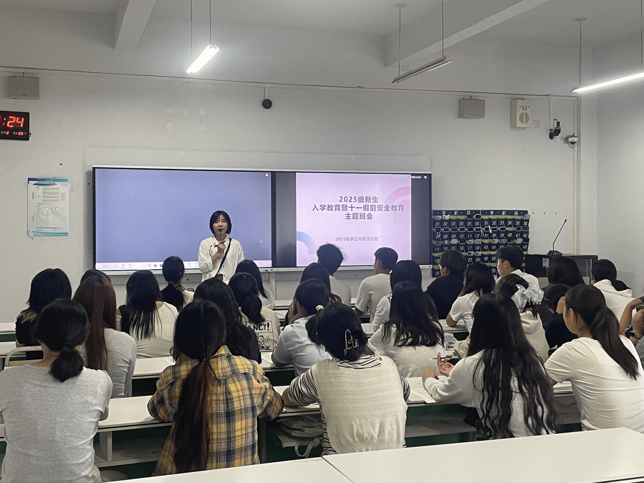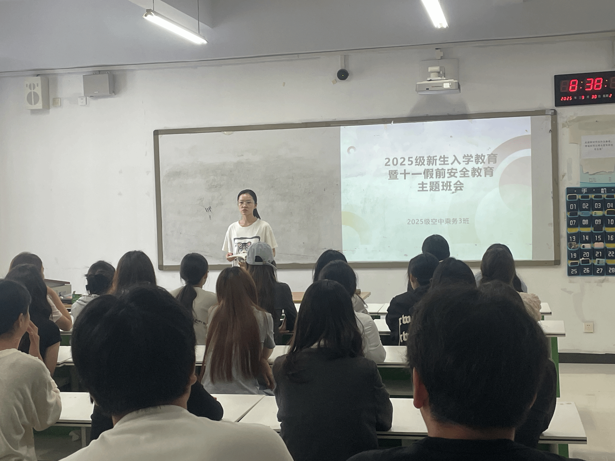 9月30日,我院组织召开2025级新生入学教育暨国庆中秋假前安全教育班会主题班会。本次班会由班主任全程主讲,针对校规校纪、文明礼仪、宿舍管理、缴费退费政策等多个方面进行解读。