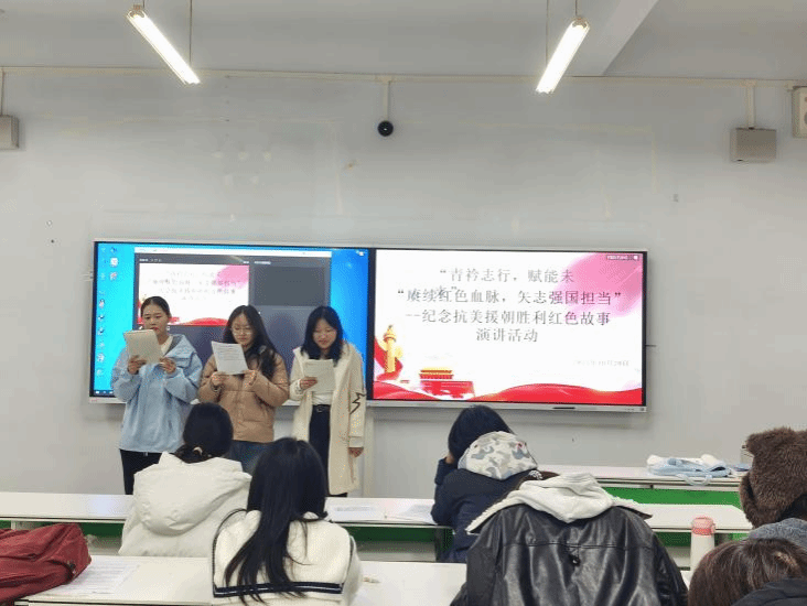 活动在庄重肃穆的氛围中拉开帷幕。同学们准备充分,深情讲述了抗美援朝战争中涌现出的英雄事迹和感人故事。从志愿军将士英勇奋战、不畏强敌的战斗精神,到后方军民同心协力的支援壮举,一个个真实而动人的故事,深深打动了在场的每一位听众。