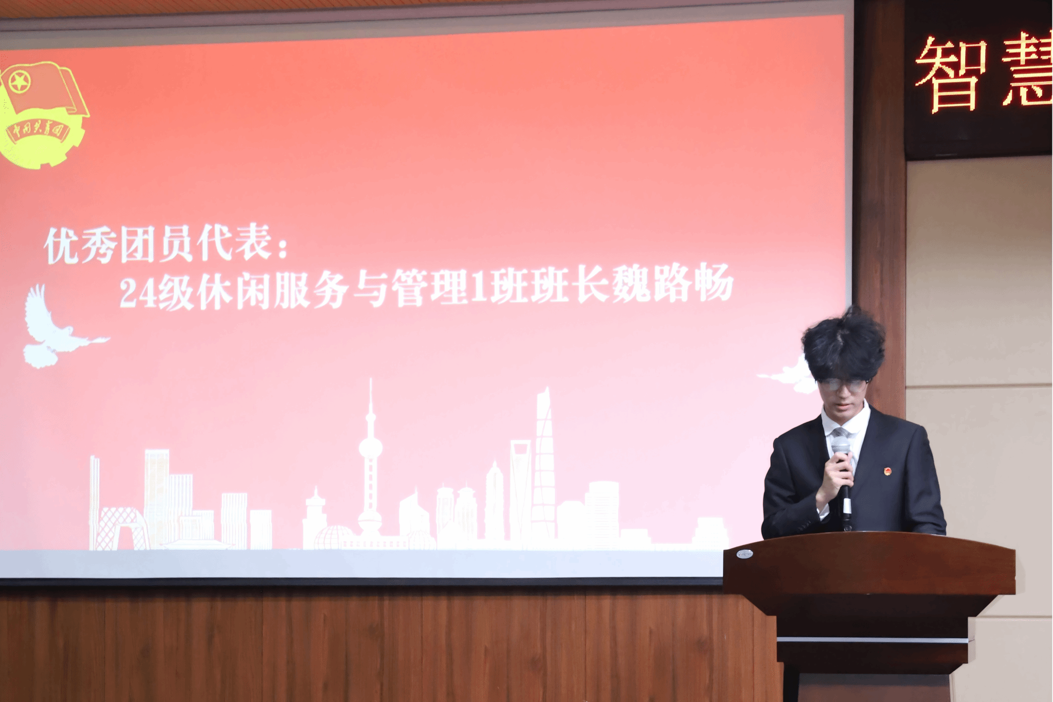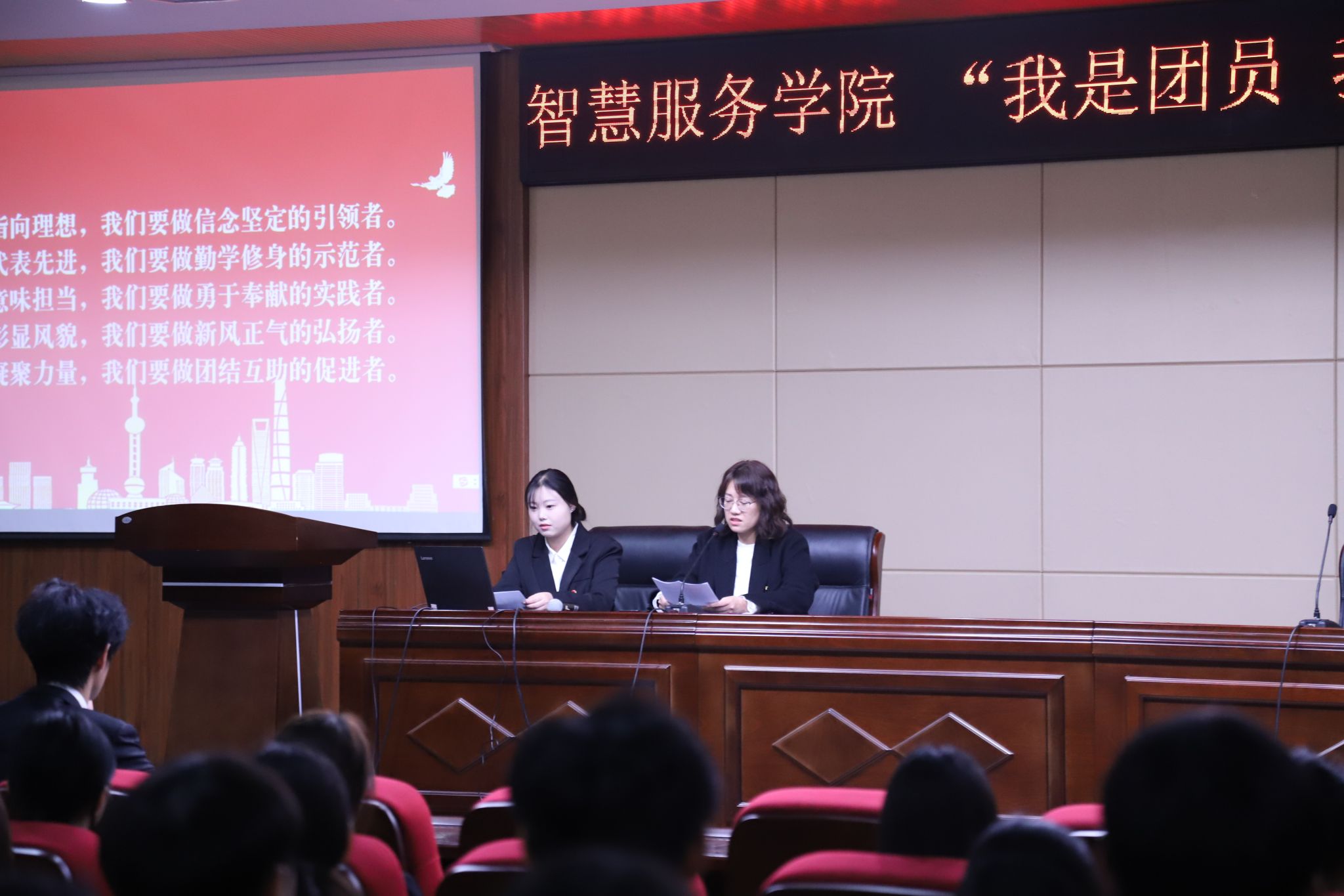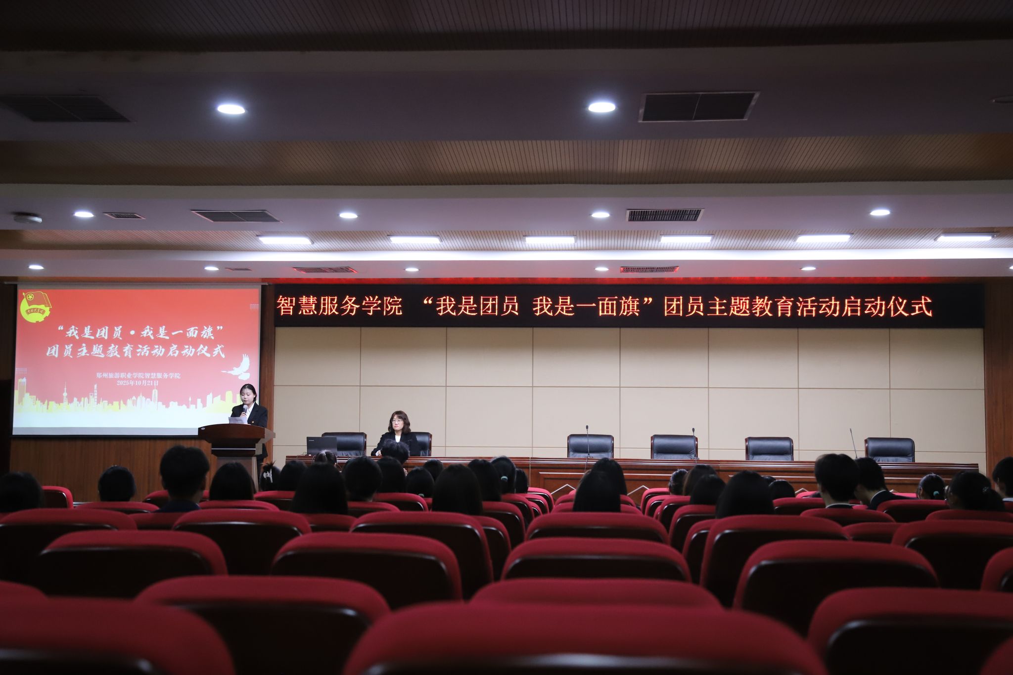为深入传承共青团光荣传统,组织号召广大团员“亮身份、树形象、作表率”,我院于10月21日在综合楼C座4楼报告厅隆重举行“我是团员·我是一面旗”团员主题教育活动启动仪式。智慧服务学院全体在校团员及团总支书记段会利参加本次活动。