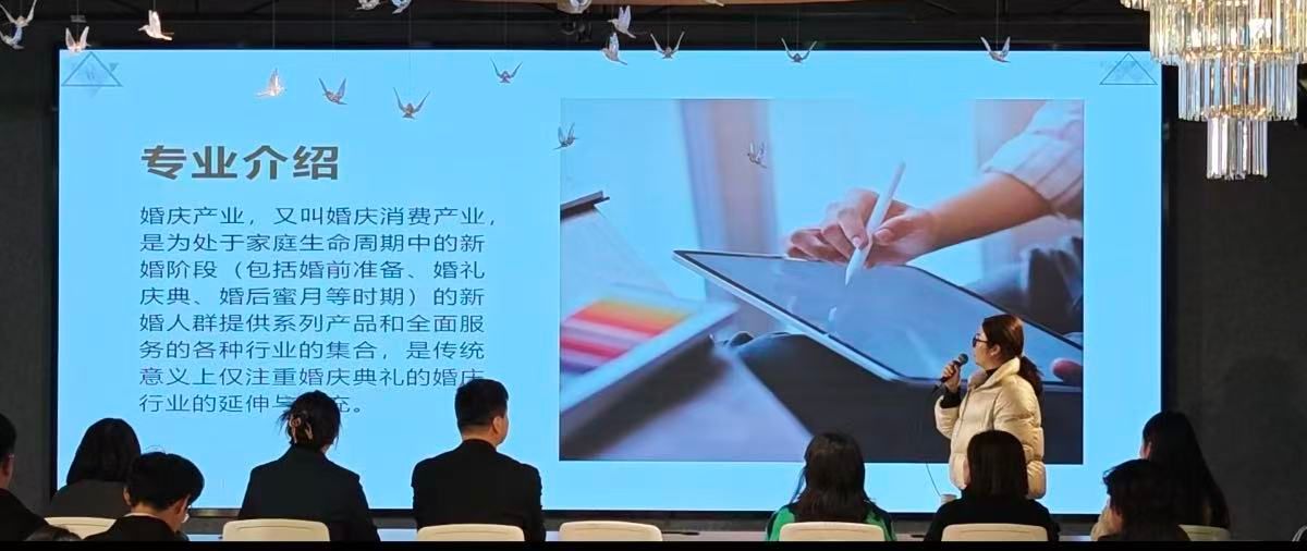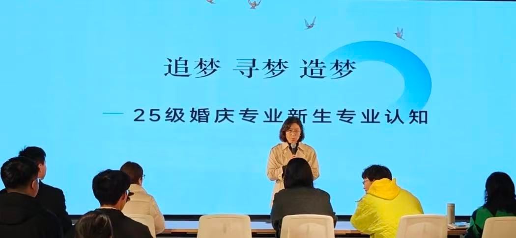 随后,教研室主任李文娟围绕专业设置、培养目标、课程体系及就业方向等内容,为新生进行了系统而全面的专业介绍,帮助同学们初步建立起对婚庆服务与管理专业的整体认知,增强了专业认同感。