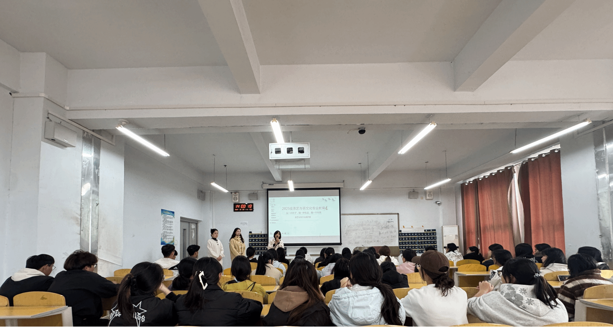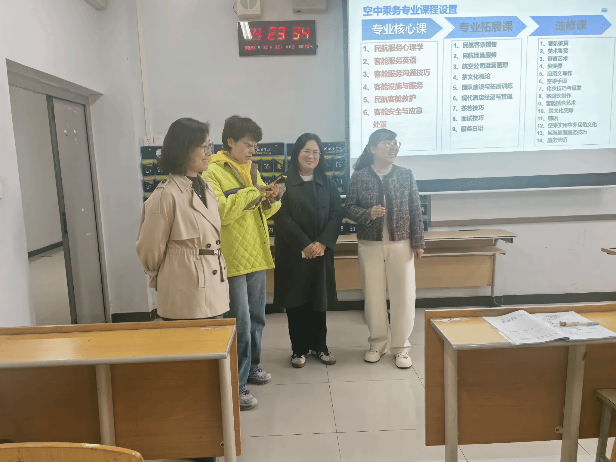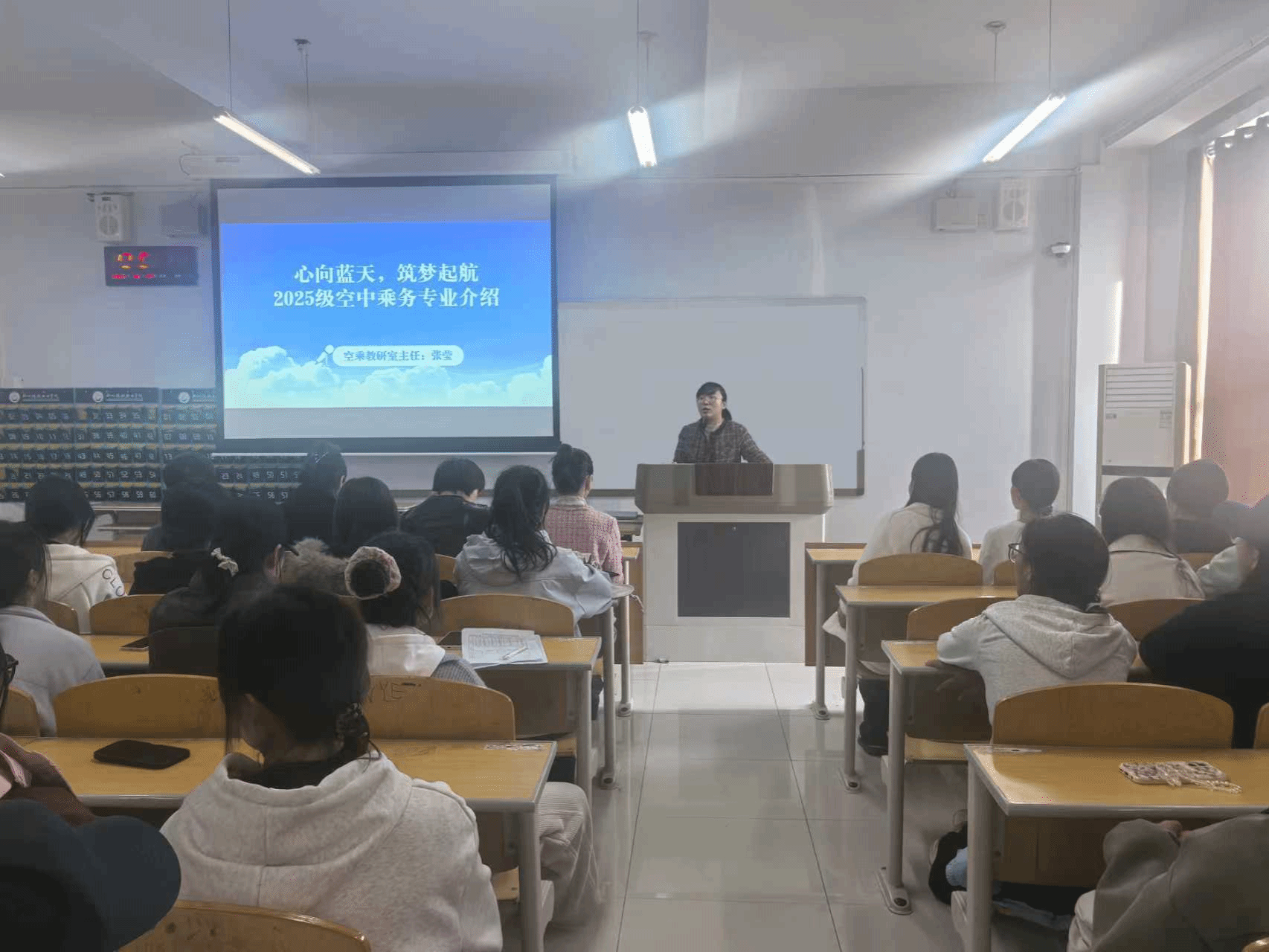 空中乘务专业教研室主任张莹以“心向蓝天,筑梦起航”为主题,从空乘专业概述入手,用丰富的行业实例与数据,阐述了我国民航业的蓬勃发展态势,以及空乘专业在行业中的重要地位,让新生对专业有了宏观认知。谈及课程设置与学习目标,教研室5位专业教师结合自己的教授课程,详细介绍了涵盖航空服务礼仪、客舱服务、应急处置等在内的核心课程,强调理论与实践结合的教学模式,鼓励新生努力提升专业技能,为未来职业发展筑牢根基。在专业发展空间方面,张莹列举了国内外航空公司、机场地勤、高端商务服务等多元就业路径,还分享了优秀毕业生的职业成长故事,极大激发了新生对专业学习的热情与期待。此次宣讲会,为新生开启空乘专业学习之旅奠定良好基础 ,也让他们对未来的职业发展充满信心。
