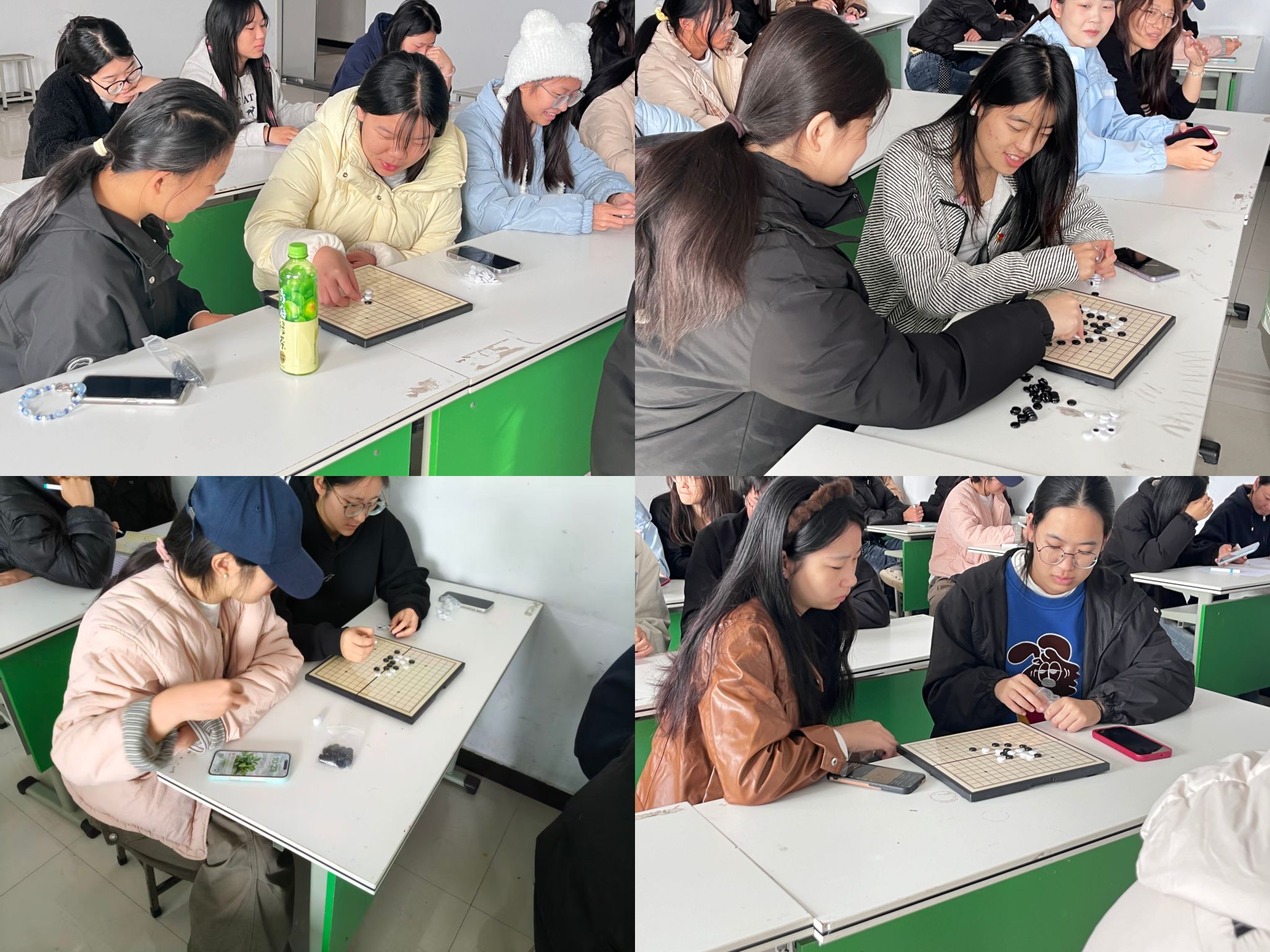 活动现场,参赛同学端坐桌前,个个神情专注,双眼紧紧锁定棋盘上的局势变化。有的同学落子前会轻托下巴沉思片刻,在脑海中推演多种布局的可能性;有的同学则从容沉稳,落子干脆利落,每一步都尽显自信。同学们没有因一时失误而焦躁,也没有因暂时领先而自满,都沉浸在五子棋带来的独特乐趣中,在黑白棋子的起落间锻炼着逻辑推理能力与临场应变能力,更真切感受着这项传统棋类所蕴含的从容与智慧;参赛同学们或凝神推演布局,或从容落子应对,在攻防间锻炼思维,也在交流中感受着竞技与陪伴的双重快乐。