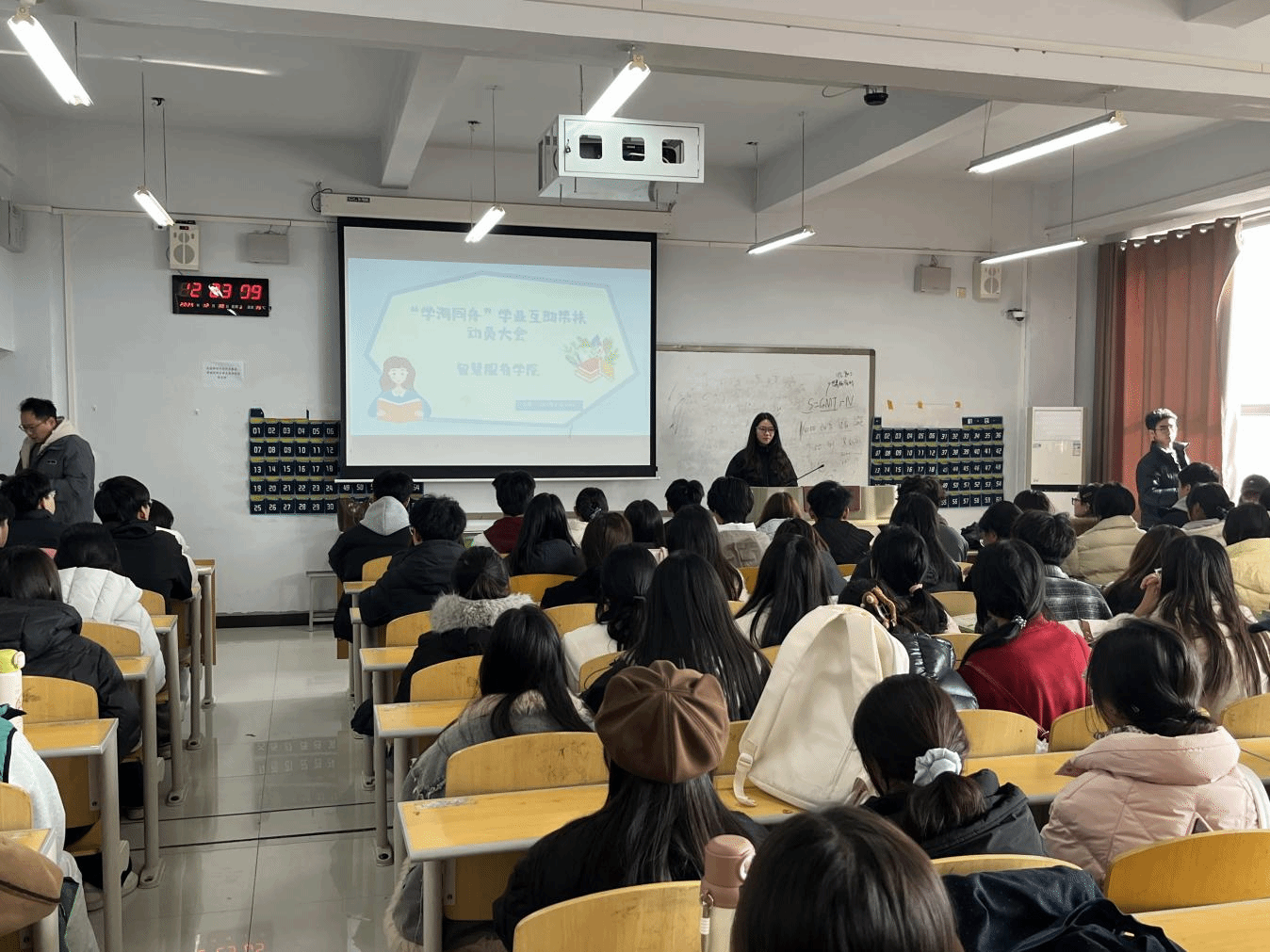 2025年12月11日,智慧服务学院于1A507教室组织召开“学海同舟”学业互助帮扶动员大会。本次大会聚焦学业提升和专业传承,号召优秀学子发挥榜样力量,精准掌握学生学业发展的实际需求,切实帮助同学们攻克学习中的难点问题。