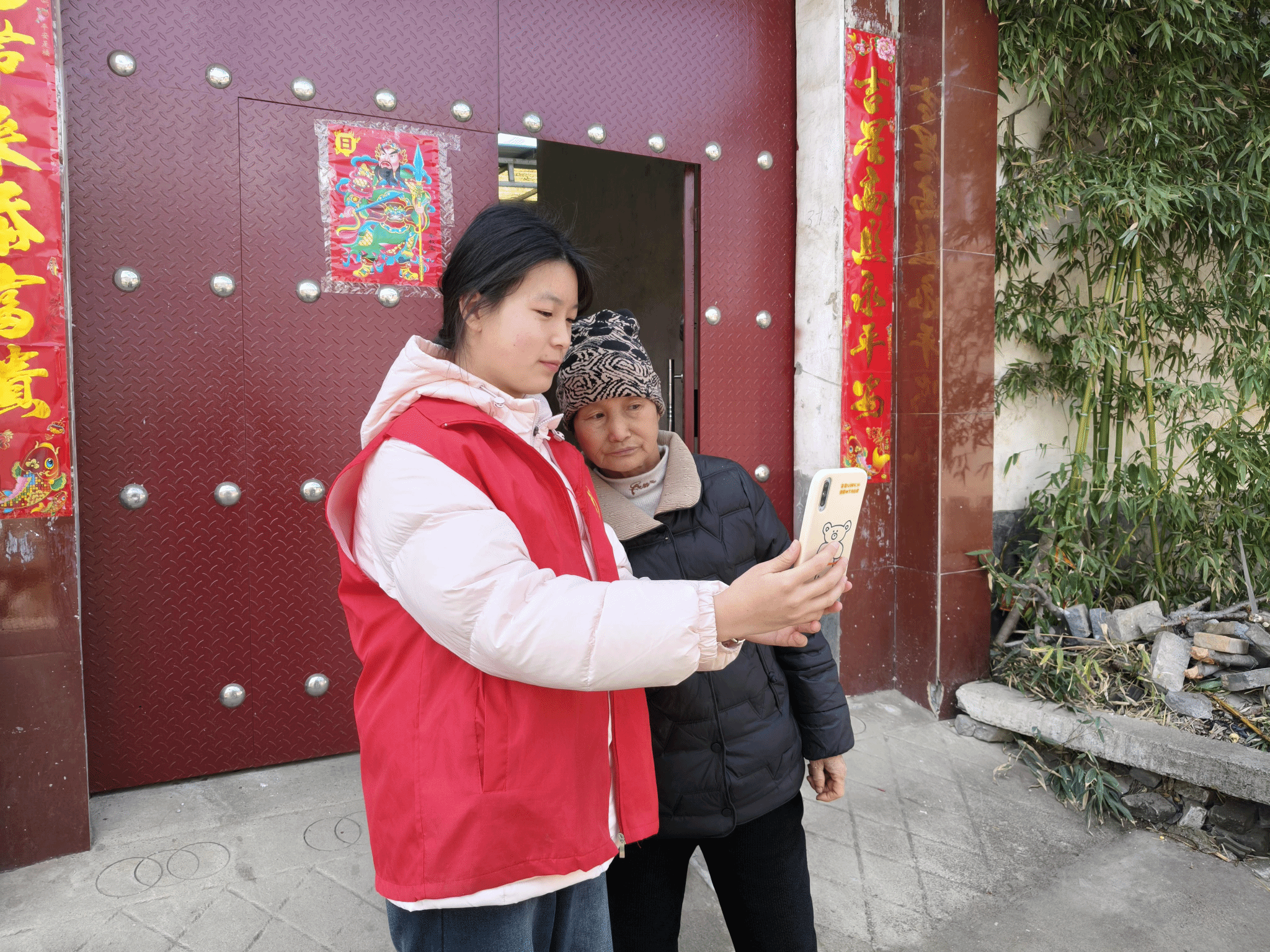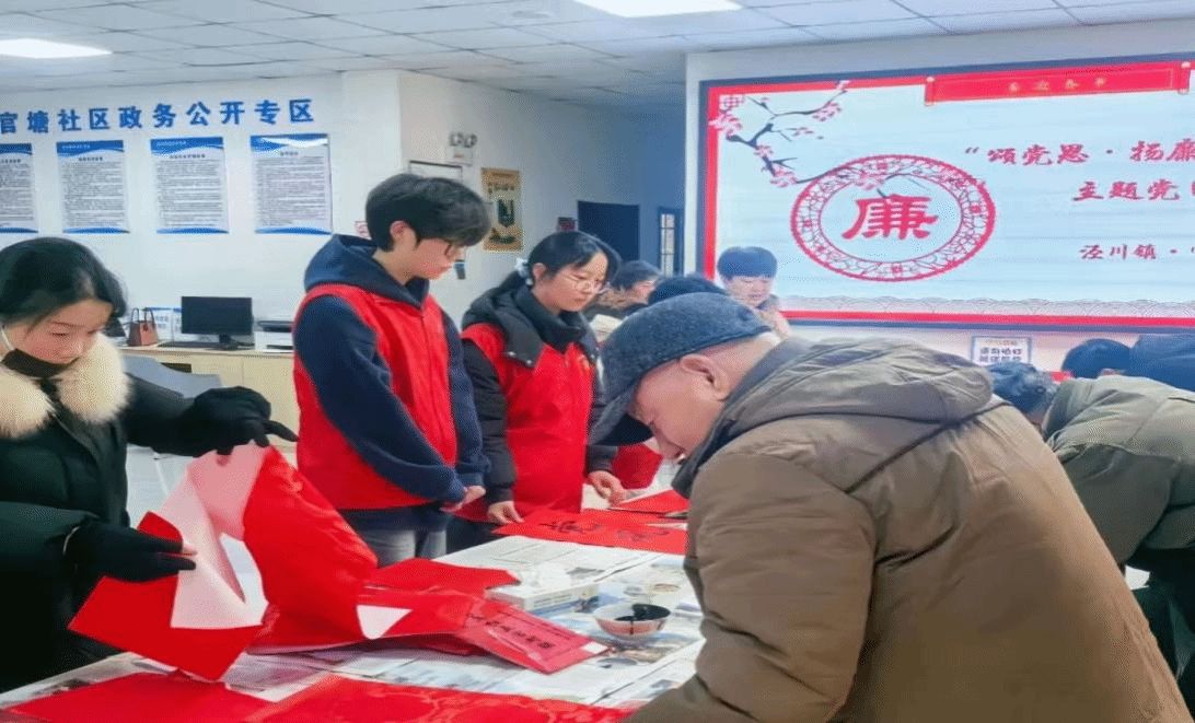 最难忘的还是写春联的环节,红纸铺展,墨香四溢,将“福暖四季”“国泰民安”的期许写进字里行间,再把写好的春联和福字送到居民手中。