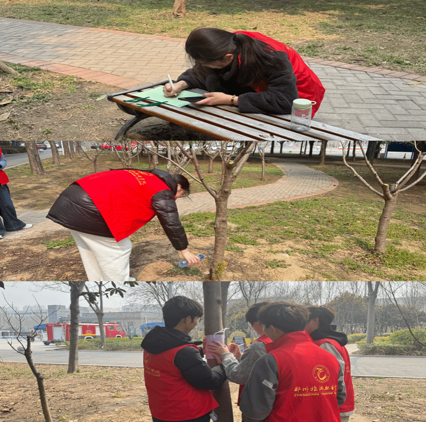活动中,志愿者们分工明确,配合默契。有的志愿者用生动的文字在卡纸上写下树木的简介和养护方法;有的志愿者拿起手中可利用的工具,穿梭在花池旁浇水、培土,在欢乐的气氛中筑牢青年志愿者的生态保护意识,在一锹一土中感受劳动的快乐,在亲手浇灌树木中体会生命的成长。