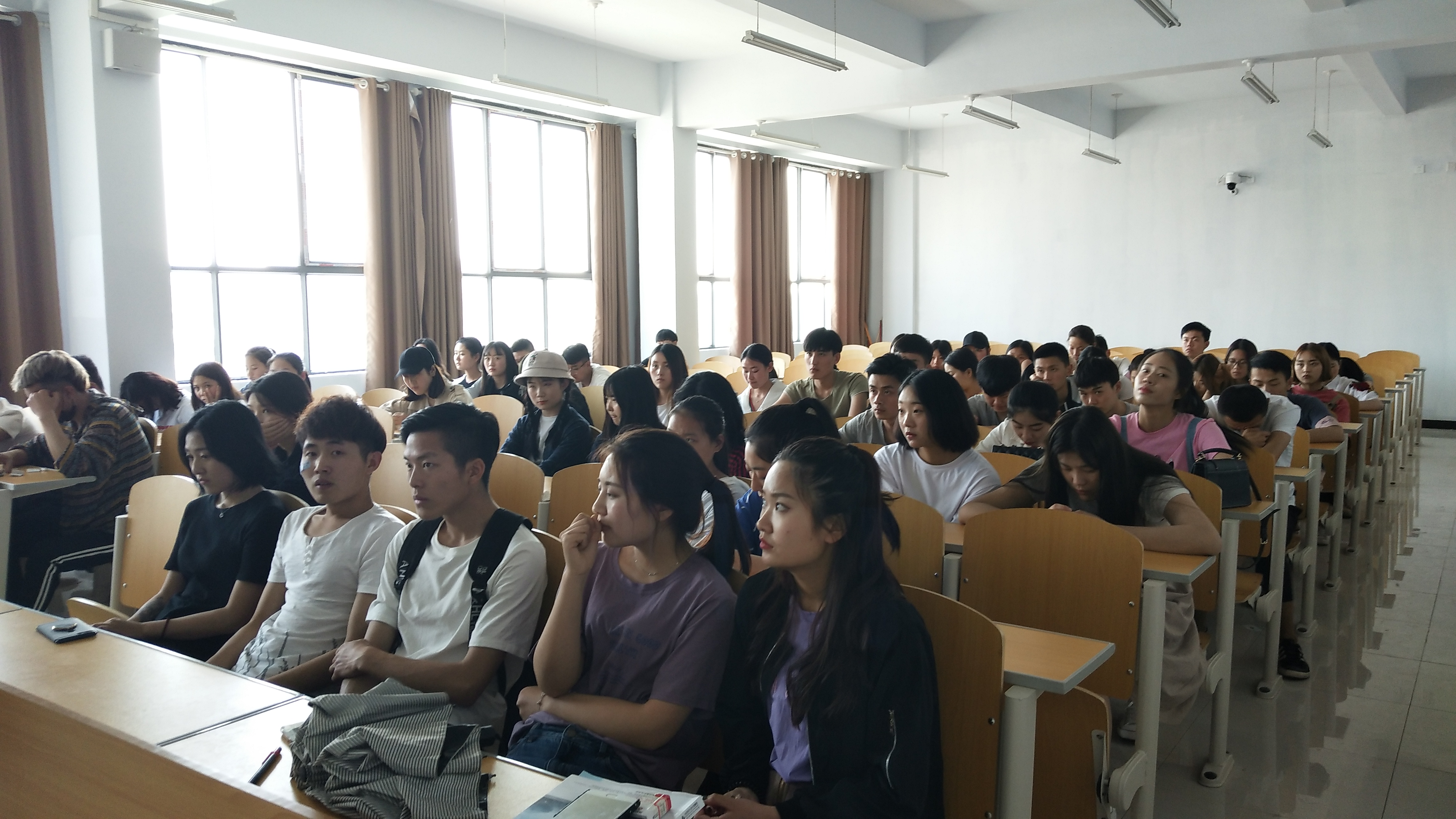 201853日社会服务系1A505阶梯教室召开了违纪学生培训会议,出席本次会议的有石艳春老师和五一假期前后违纪的同学。