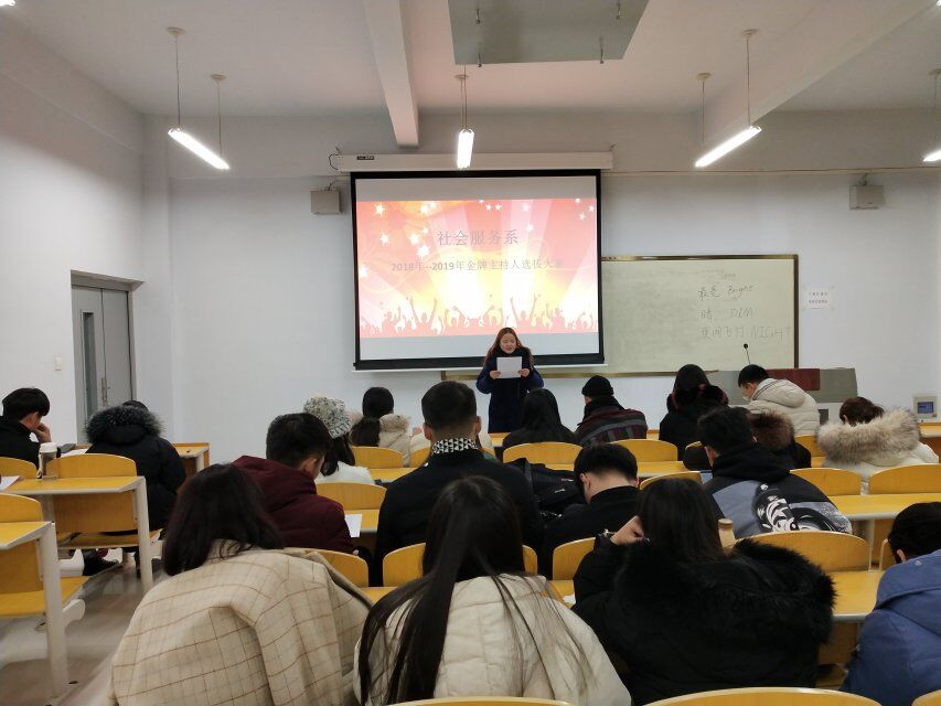 为展现我系学生的精神面貌,张扬青春风采,也为了元旦晚会选拔出一个合适的主持人,社会服务系于2018年12月9日在1A509教室内开展了“遇见2019,遇见你”主持人大赛。出席本次大赛的有学生书记张梦雨、学生副书记李艳艳、王玉磊、团总支办公室主任原敏杰。