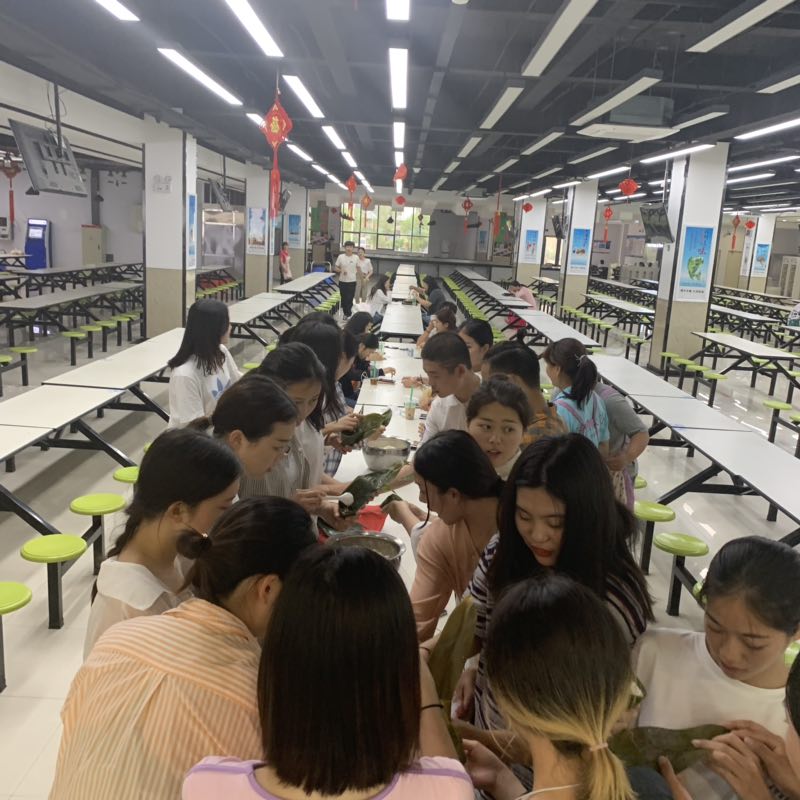 活动中,大家分工明确,5名同学负责清洗粽叶,10人负责搅拌粽子馅,其他同学大家一起包粽子。大家动手实践,发现看似简单的一弯一绕,技术难点还是挺多的,活动现场一片欢腾,笑声连连。此次活动让大家体验了学会新技能的成就,感受了端午节浓浓的节日气氛。并且增进了同学们之间的相互交流,正所谓“一只青粽,一缕浓情……”