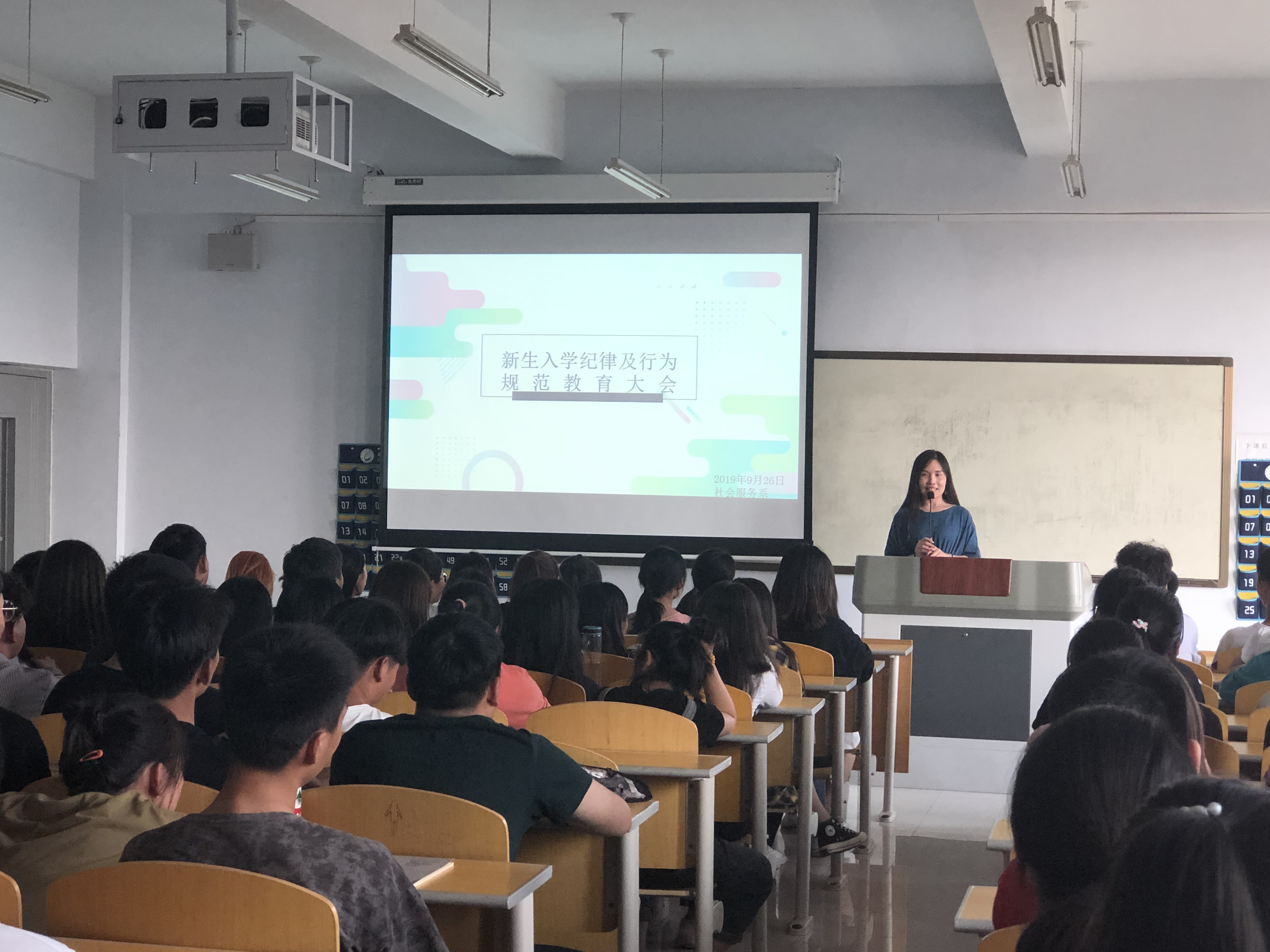 良好的开端是成功的一半,为了帮助2019级新生掀开生活新篇章,开启人生新征途,现代服务学院于2019年9月26日于1号教学楼507教室举行了以“积极适应学园生活,好好遵守学院纪律”为主题的入学教育大会。石艳春老师主持此次会议,2019级全体在校学生参与了此次大会。